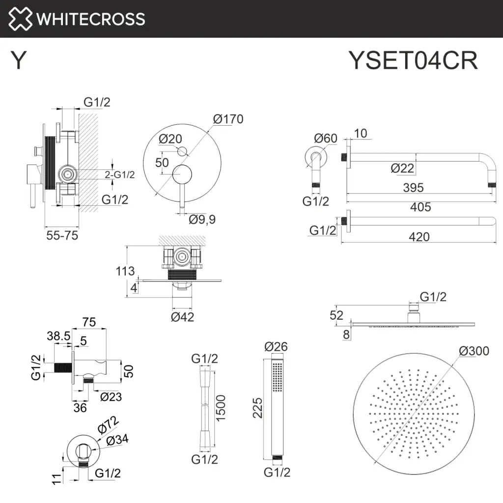 Система для душа скрытого монтажа WHITECROSS Y YSET04CR (хром)