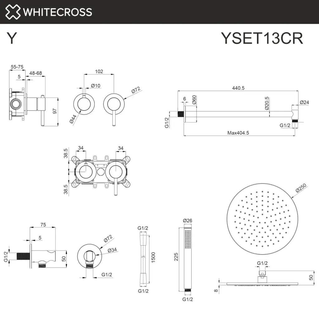 Система для душа скрытого монтажа WHITECROSS Y YSET13CR (хром)