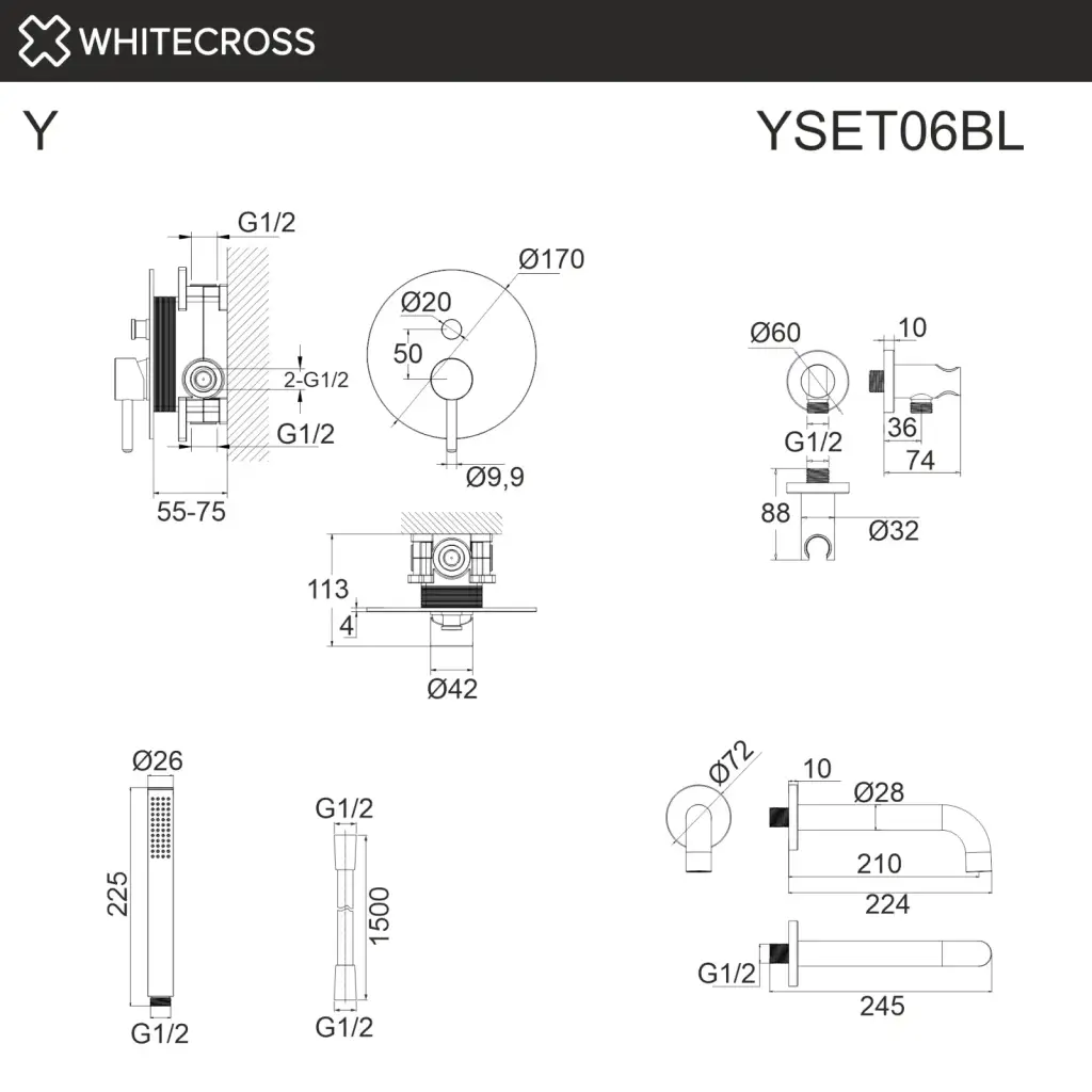 Система для ванны скрытого монтажа WHITECROSS Y YSET06BL (черный мат)