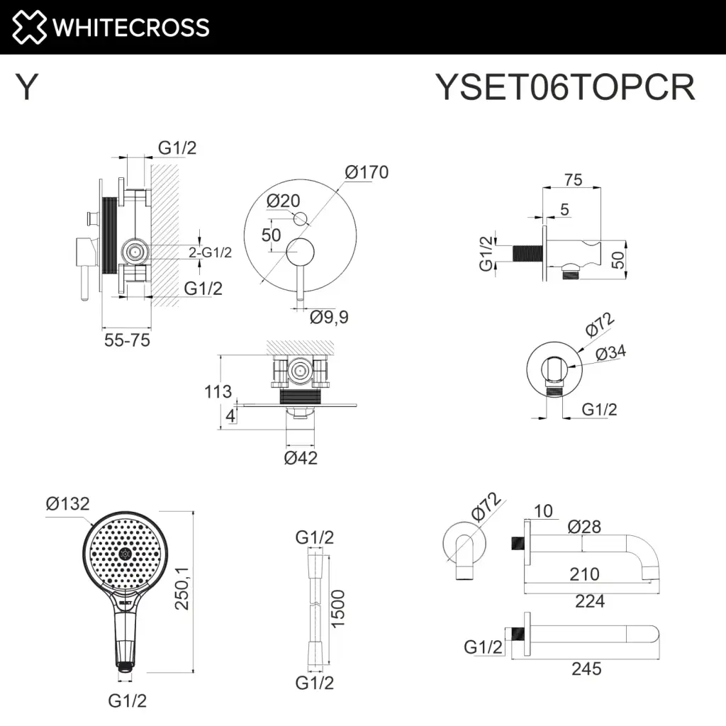 Система для ванны скрытого монтажа WHITECROSS Y YSET06TOPCR (хром)