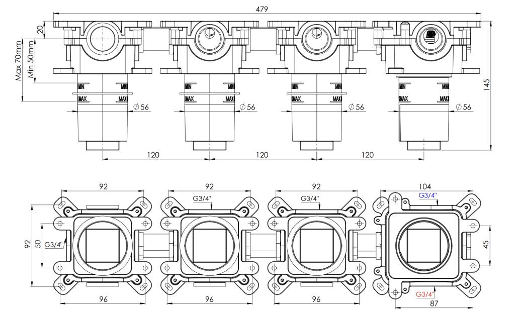 Скрытая часть на 3 выхода Remer Thermoset RRBOX99D3P