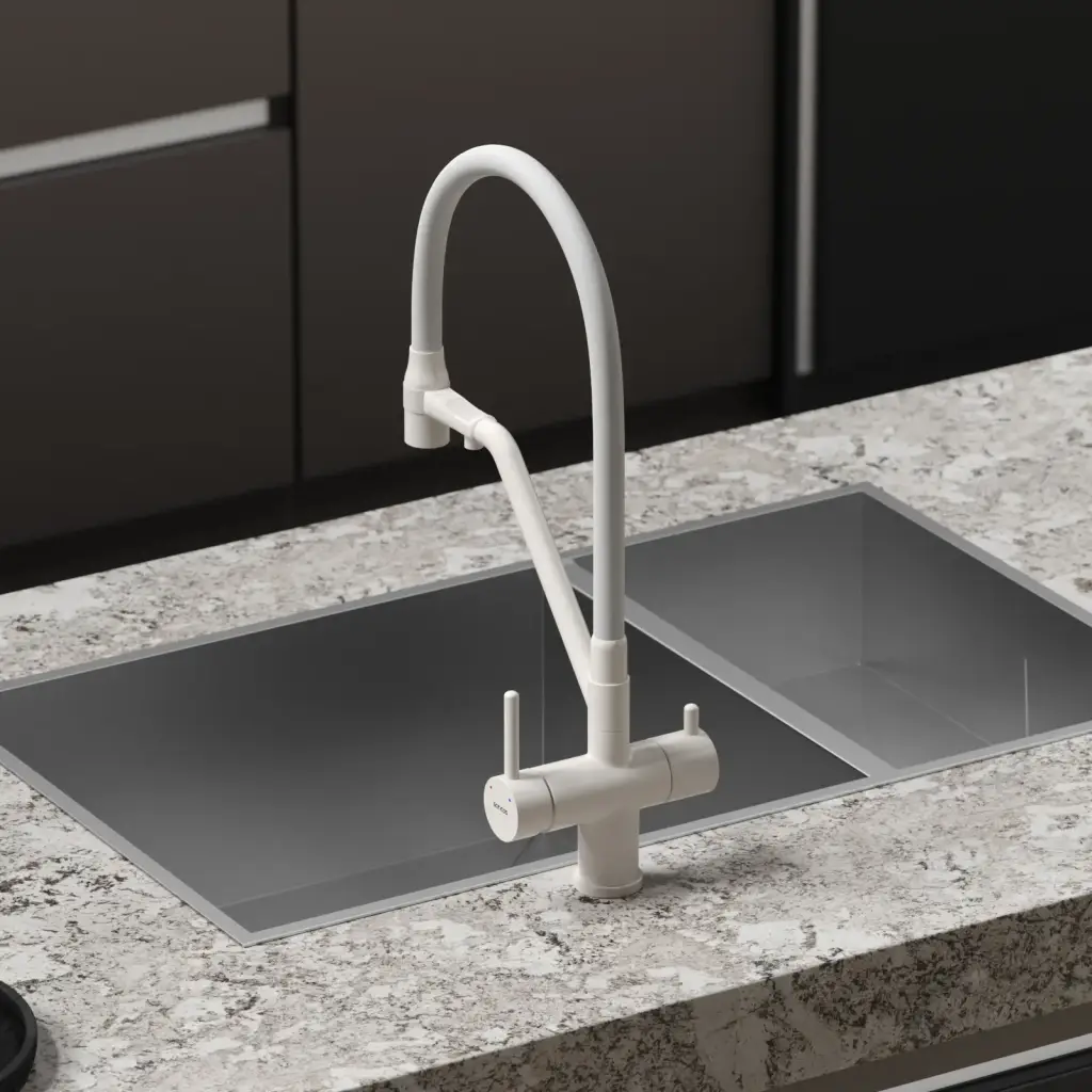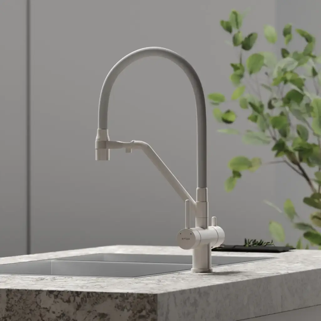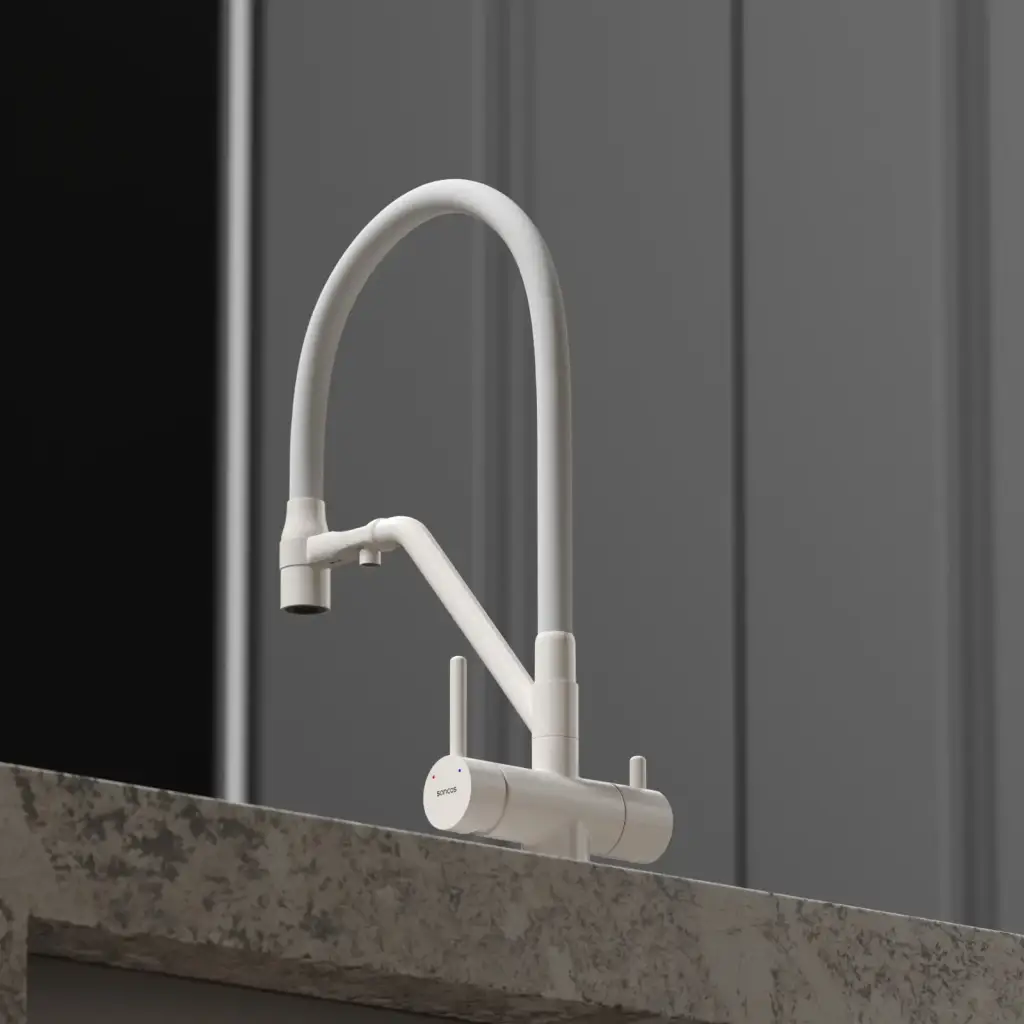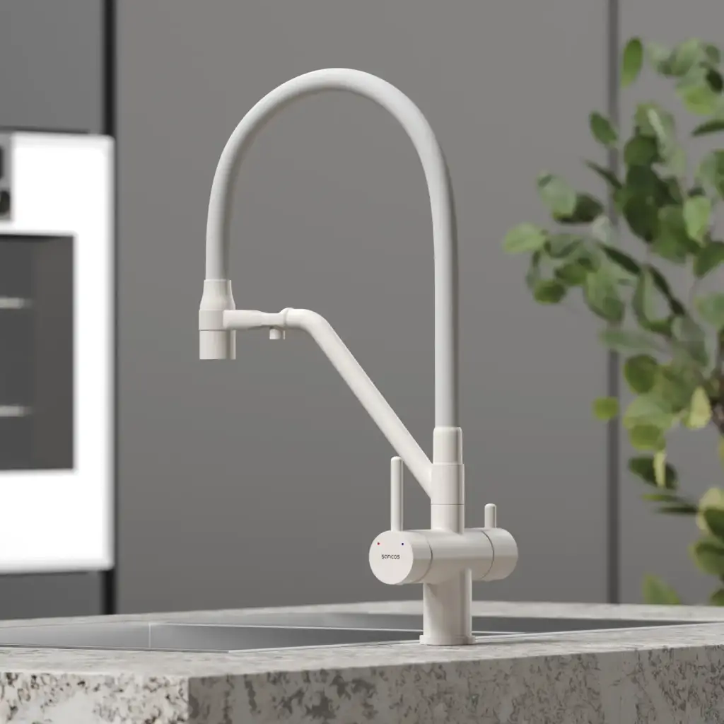 Смеситель для кухни SANCOS Дора (Dora) с возможностью подключения фильтра для воды, цвет матовый белый, арт. SC4003MW