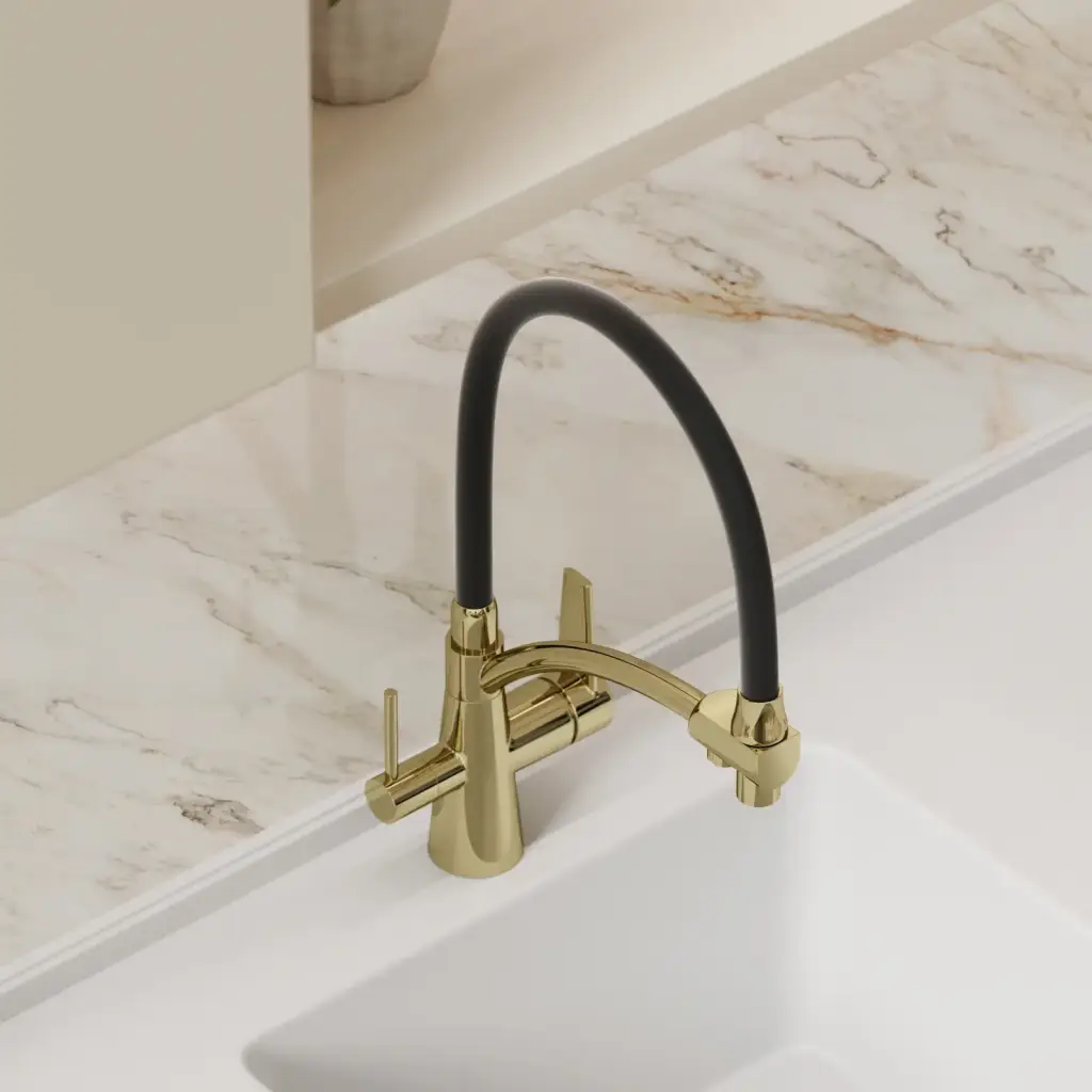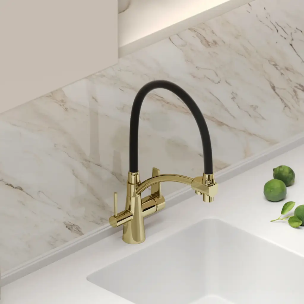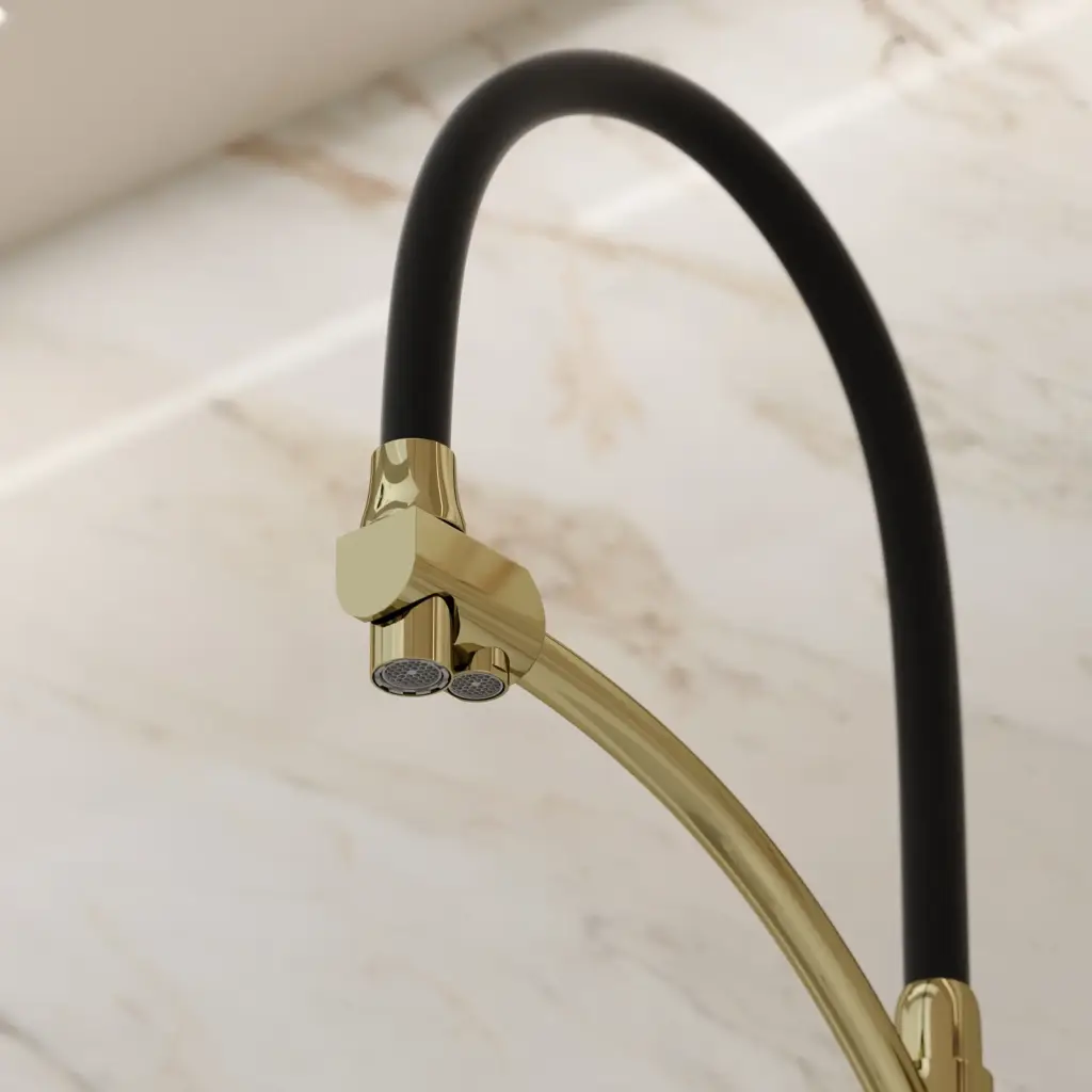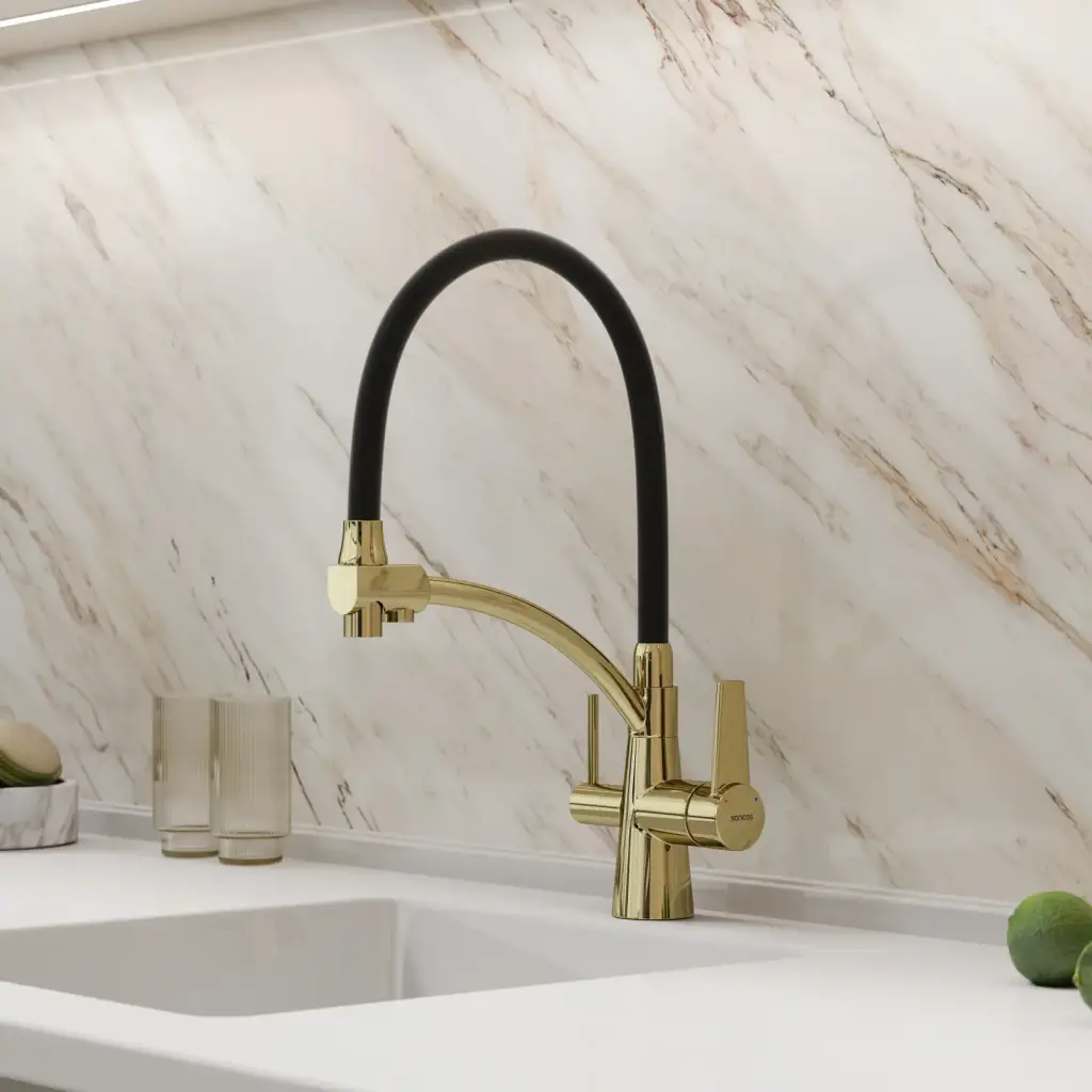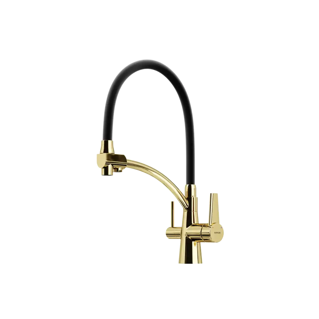 Смеситель для кухни SANCOS Эри (Eri) с возможностью подключения фильтра, цвет полированное золото, ПВД(PVD) покрытие, арт. SC4001ZG