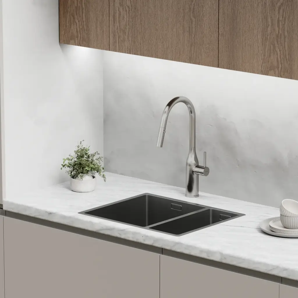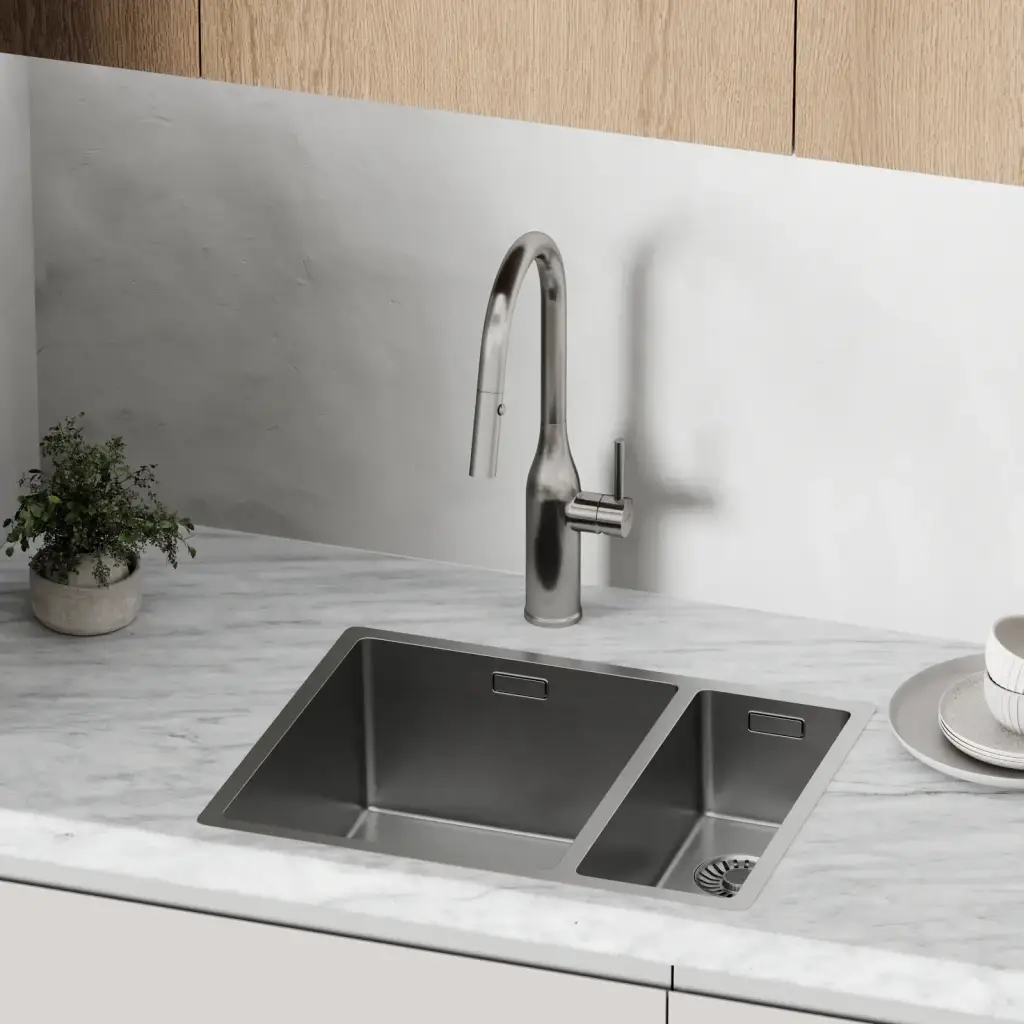 Смеситель для кухни SANCOS Гранд (Grand) с вытяжным изливом, цвет вороненая сталь, арт. SC4002GG