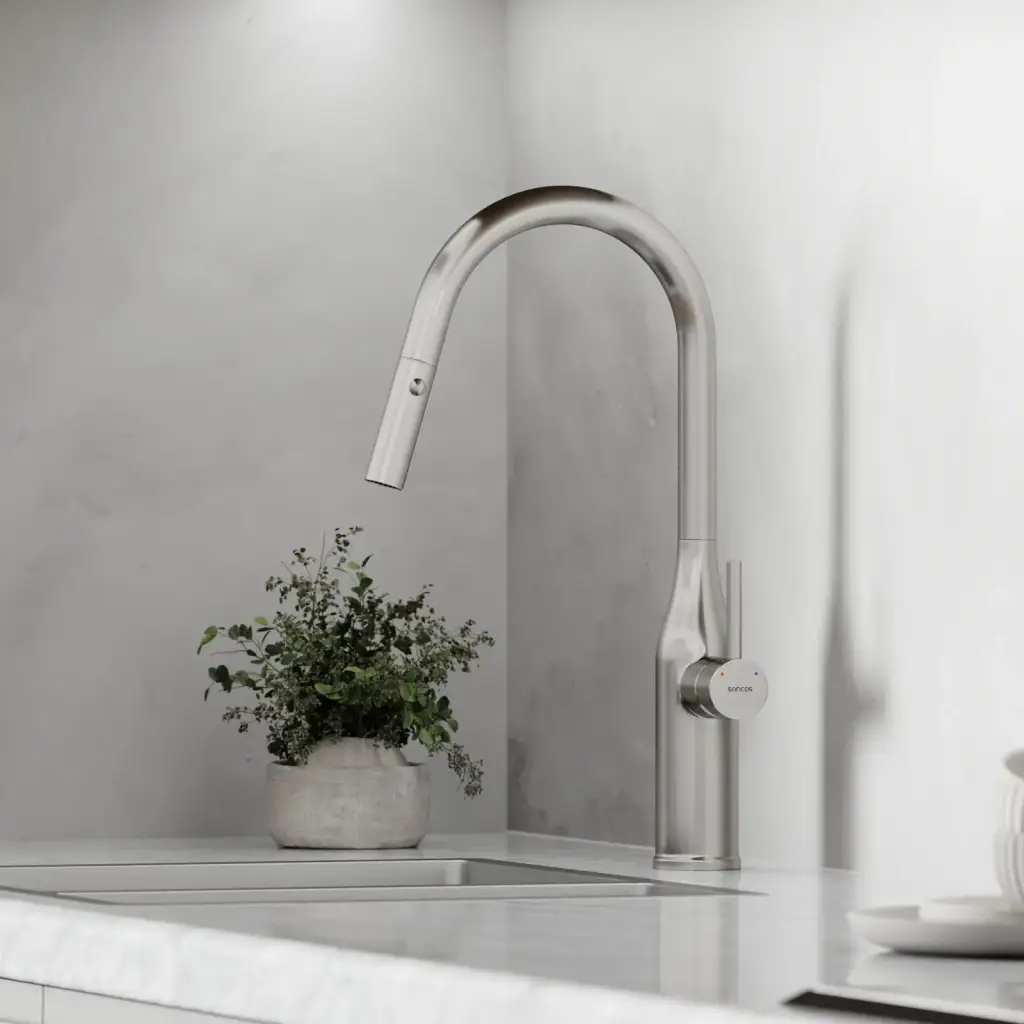 Смеситель для кухни SANCOS Гранд (Grand) с вытяжным изливом, цвет нержавеющая сталь, арт. SC4002BNG