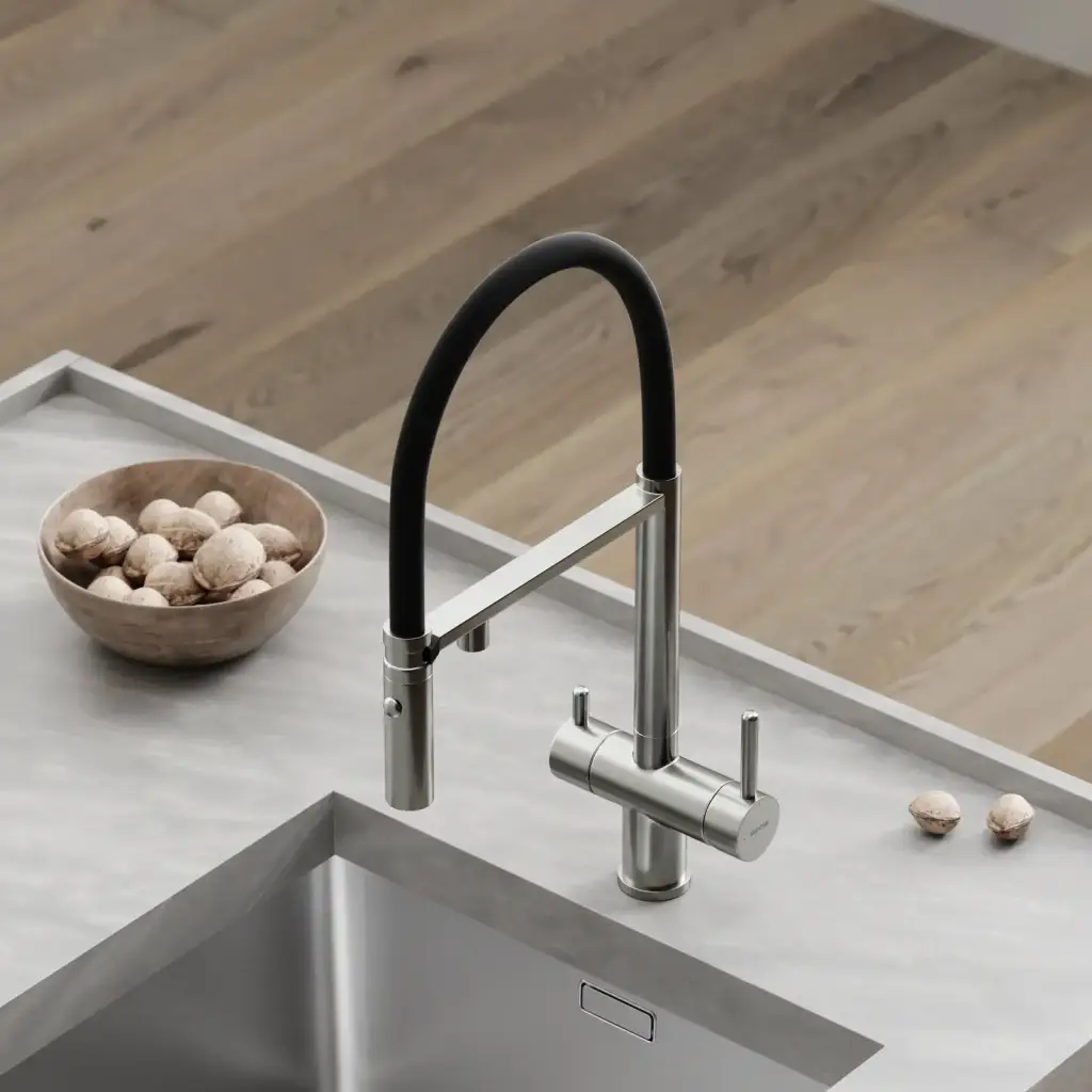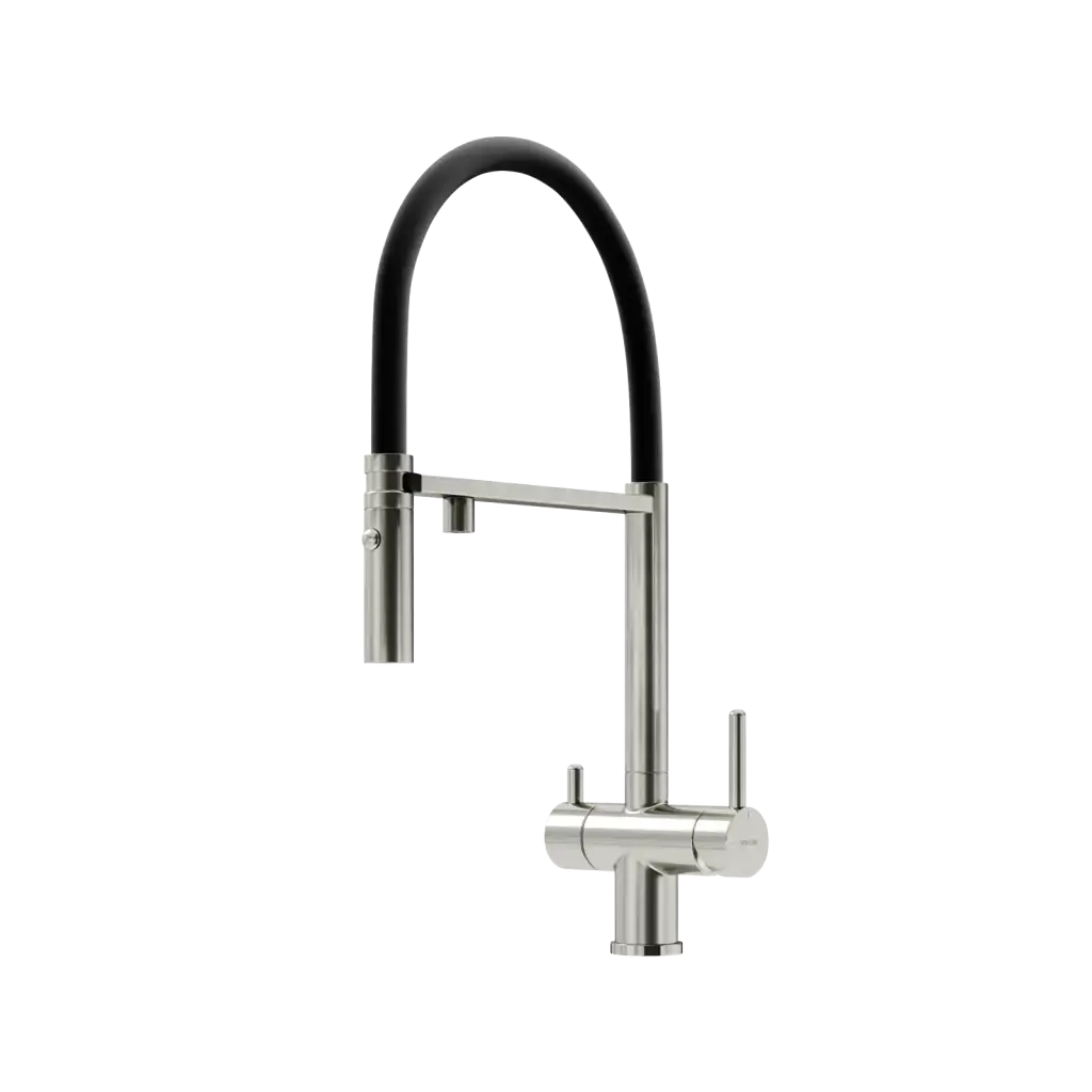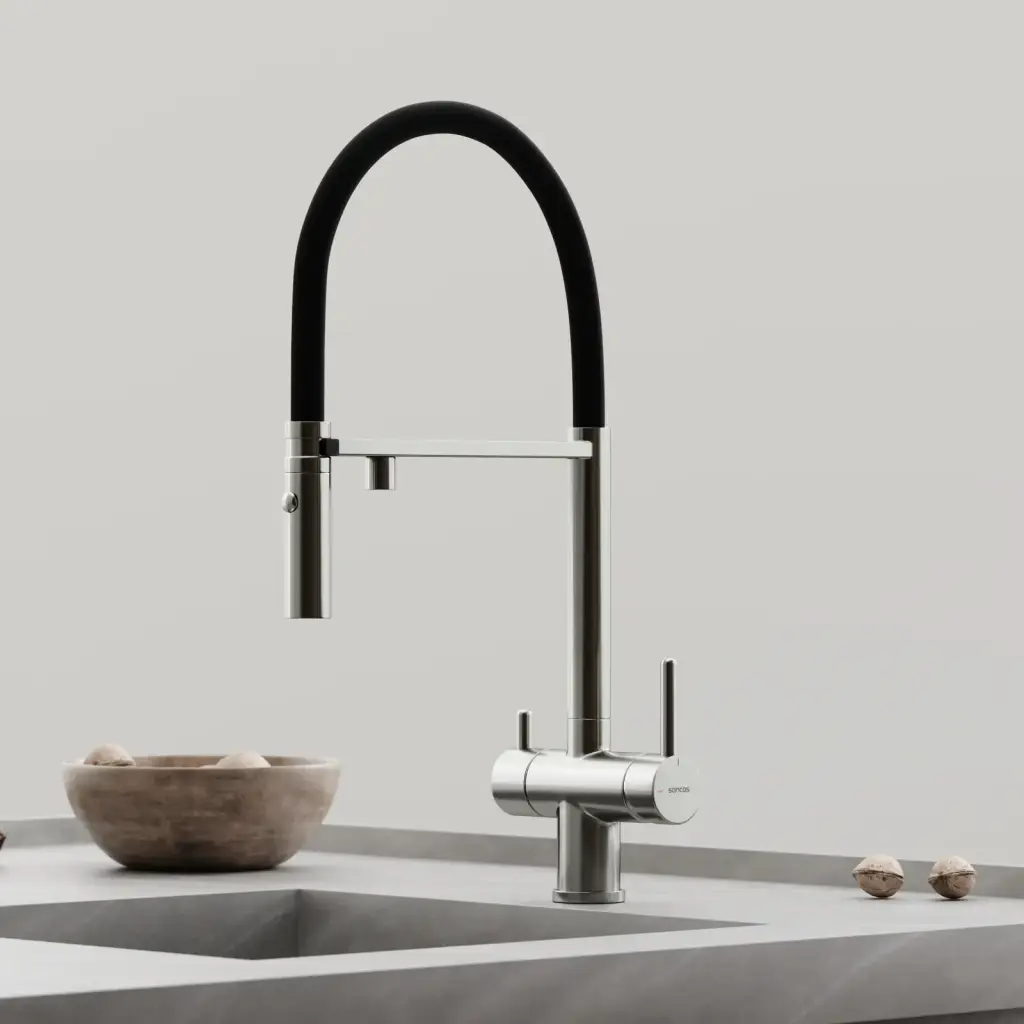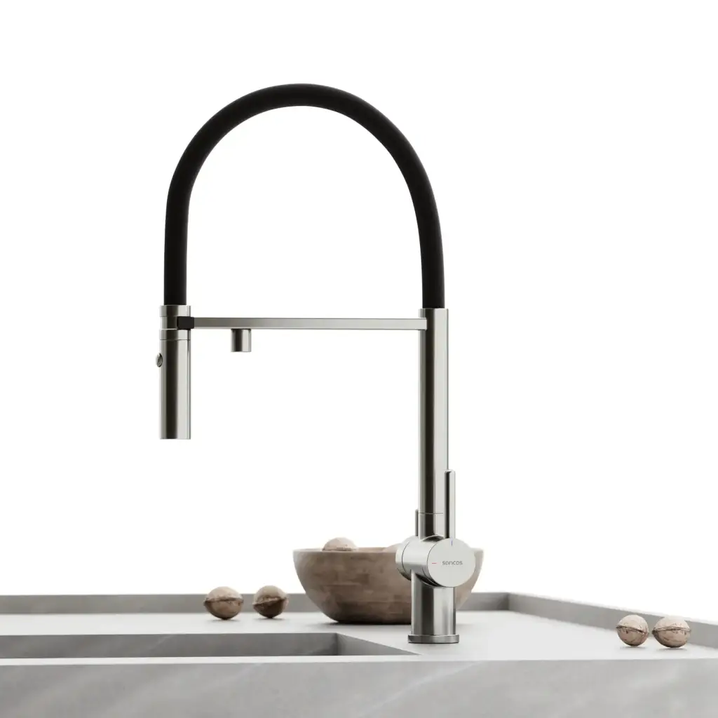 Смеситель для кухни SANCOS Имола (Imola) с возможностью подключения фильтра для воды, цвет брашированный никель с черным изливом, арт. SC4010BNbh