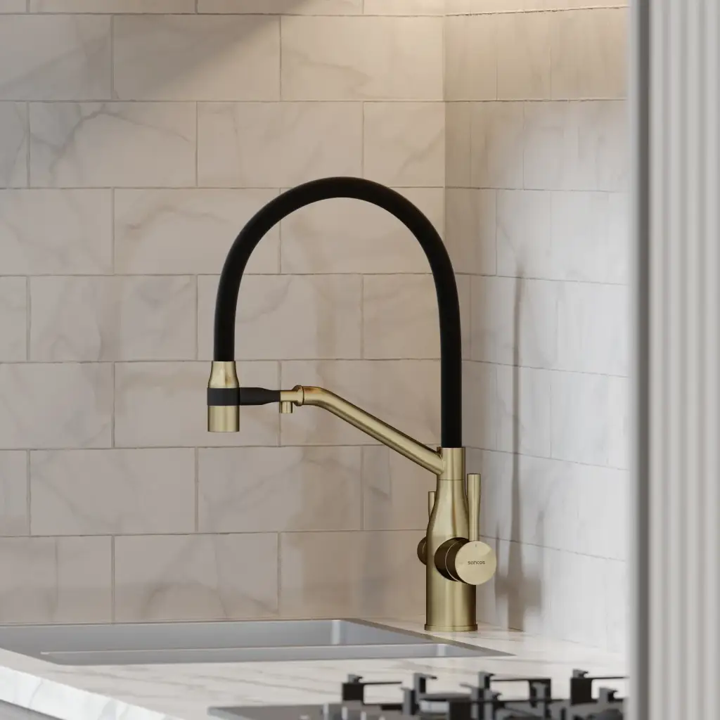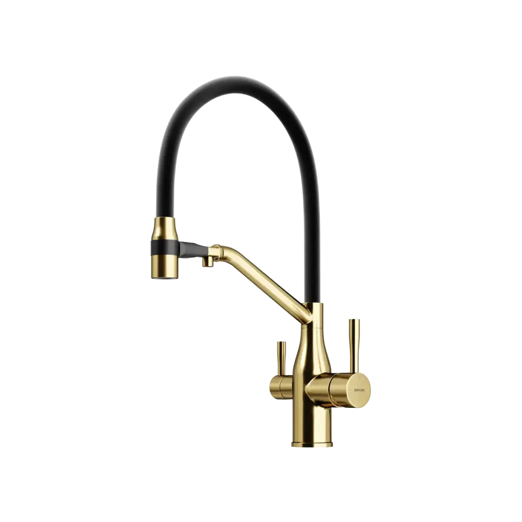 Смеситель для кухни SANCOS Орта (Orta) с возможностью подключения фильтра для воды, цвет брашированное золото, ПВД(PVD) покрытие, арт. SC4008BG