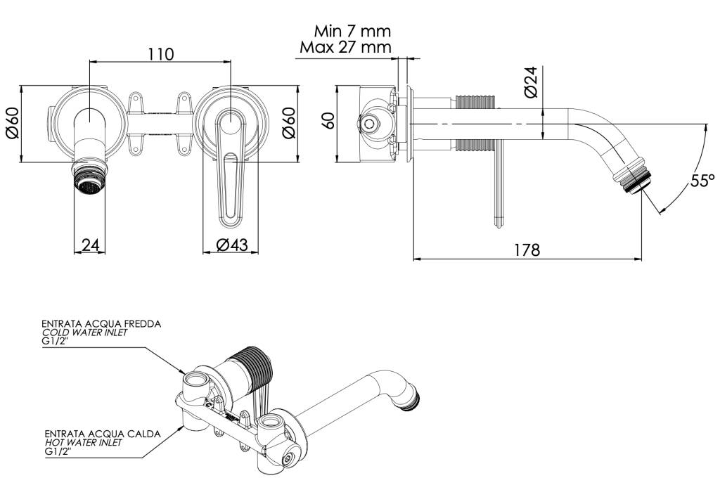 Смеситель для ванны Daniel Brooklyn BY610XV, сталь