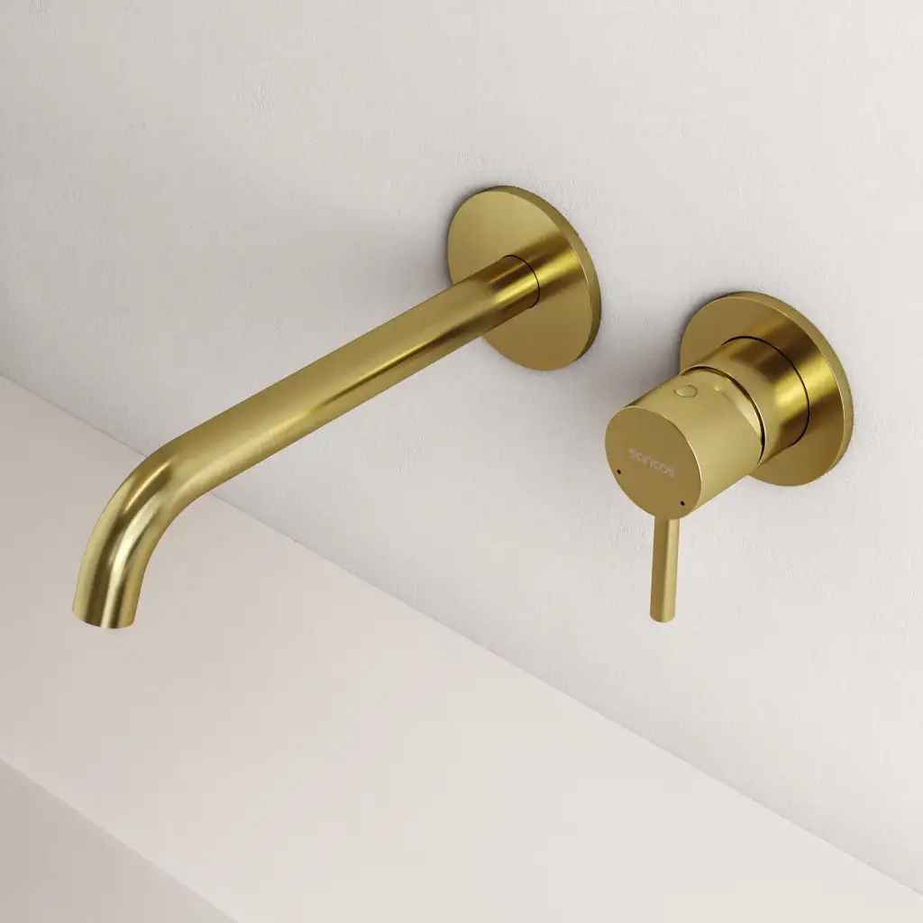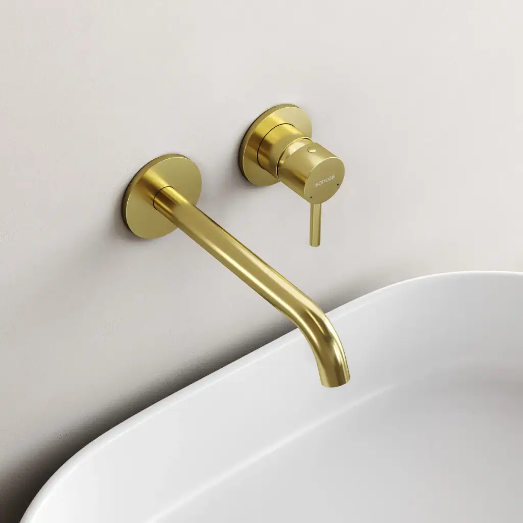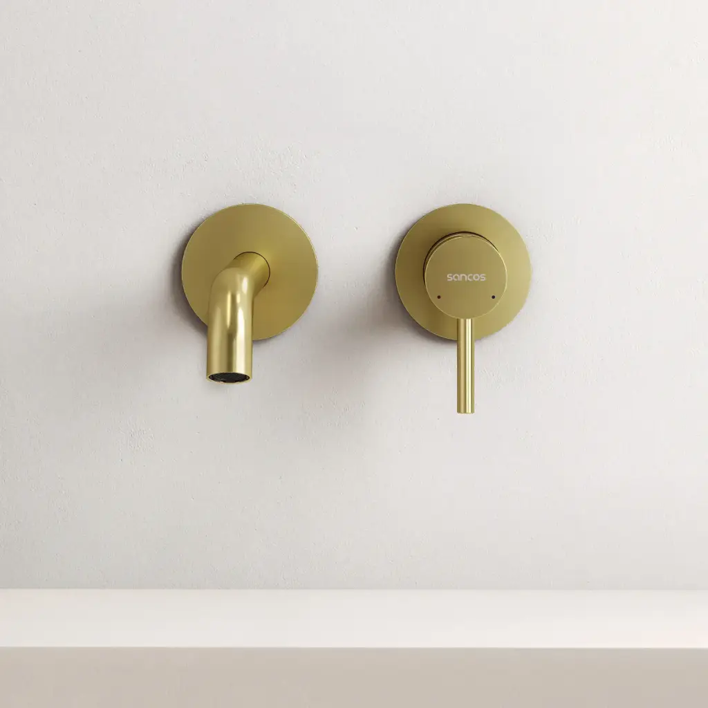Смеситель для раковины SANCOS Этна (Etna) с внутренней частью, брашированное золото, PVD покрытие, арт. SC9004BG