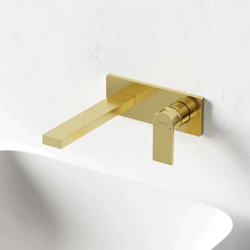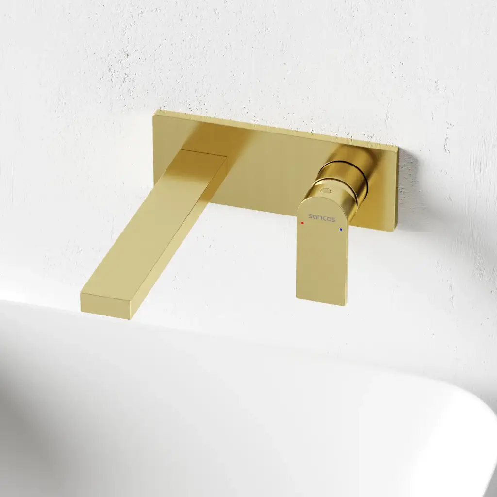 Смеситель для раковины SANCOS Студия (Studio) c внутренней частью, брашированное золото, PVD покрытие, арт. SC9017BG