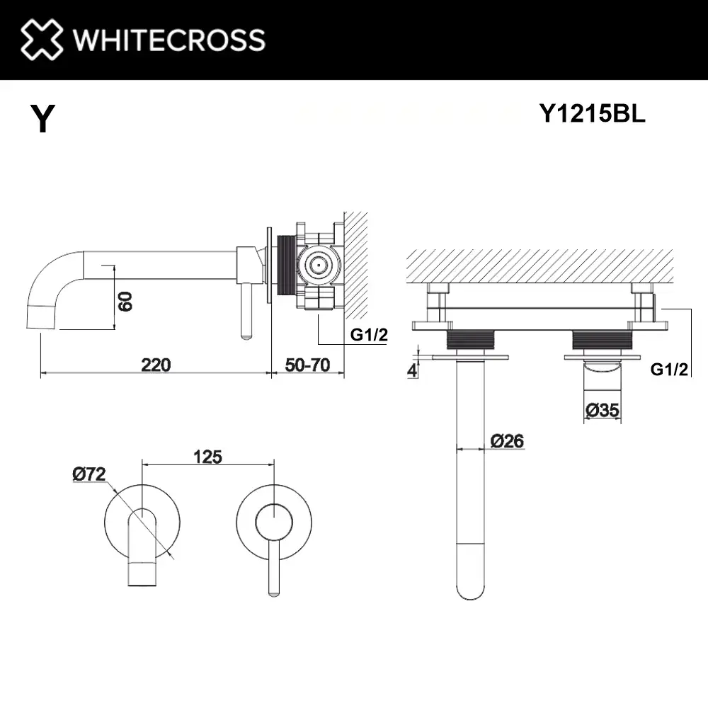 Смеситель для умывальника скрытого монтажа WHITECROSS Y Y1215BL (черный мат)
