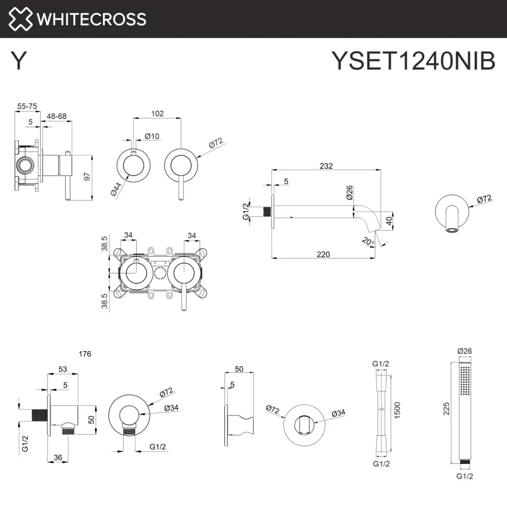 Смеситель для ванны скрытого монтажа WHITECROSS Y YSET1240BL (черный мат);Смеситель для ванны скрытого монтажа WHITECROSS Y YSET1240CR (хром);Смеситель для ванны скрытого монтажа WHITECROSS Y YSET1240GL (золото);Смеситель для ванны скрытого монтажа WHITECROSS Y YSET1240GLB (брашированное золото);Смеситель для ванны скрытого монтажа WHITECROSS Y YSET1240GM (оружейная сталь);Смеситель для ванны скрытого монтажа WHITECROSS Y YSET1240NIB (брашированный никель)