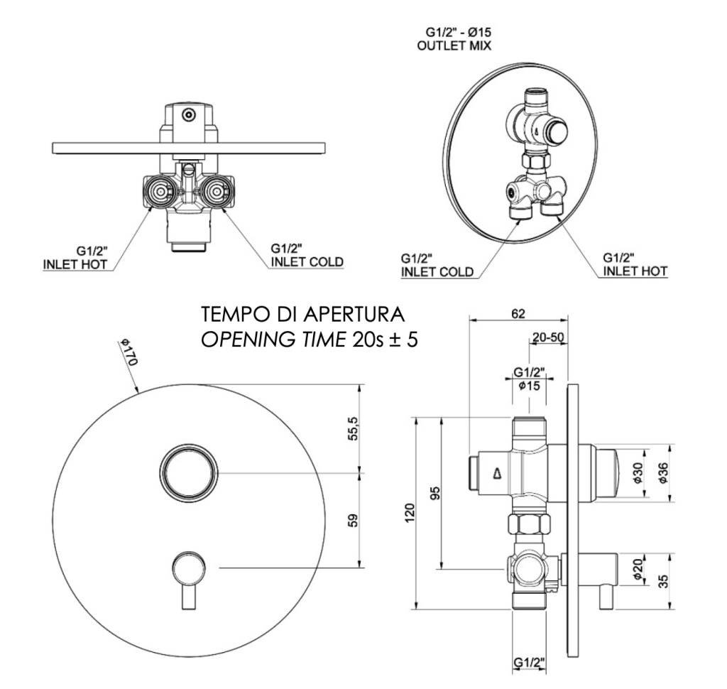 Смеситель порционный для душа Remer Tempor TE32M