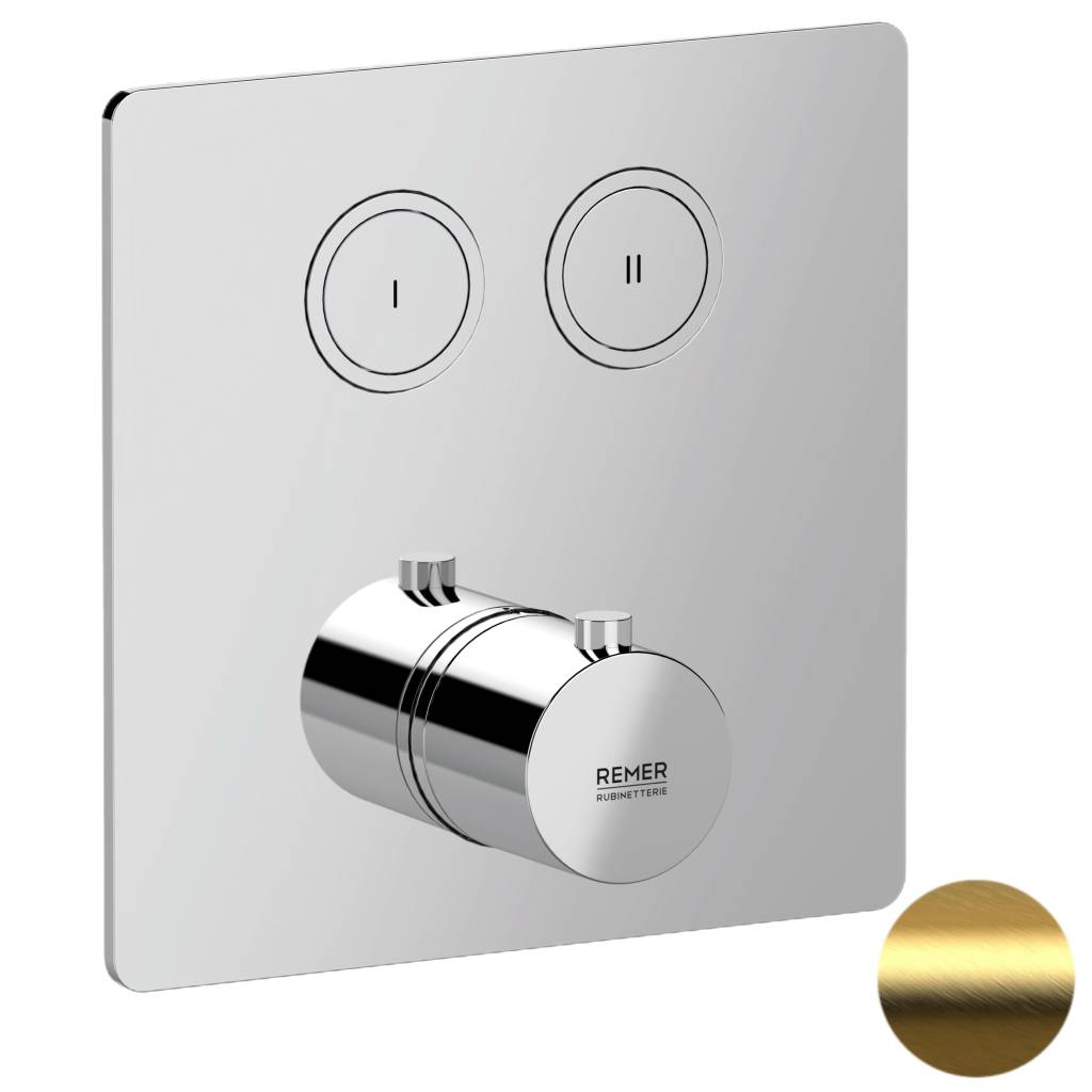 Смеситель термостатический для душа Remer X Style X99QD2KBBG, золото брашированное