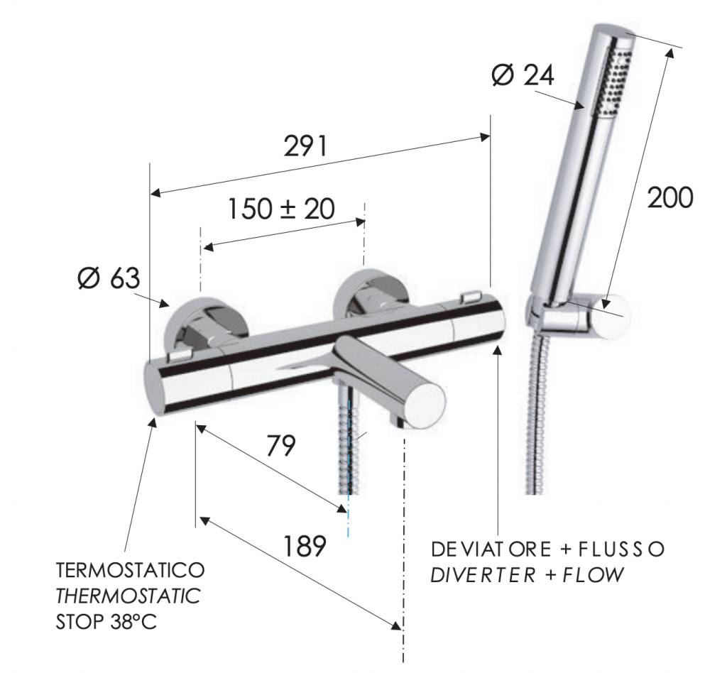 Смеситель термостатический для ванны Remer Elegance EQ02
