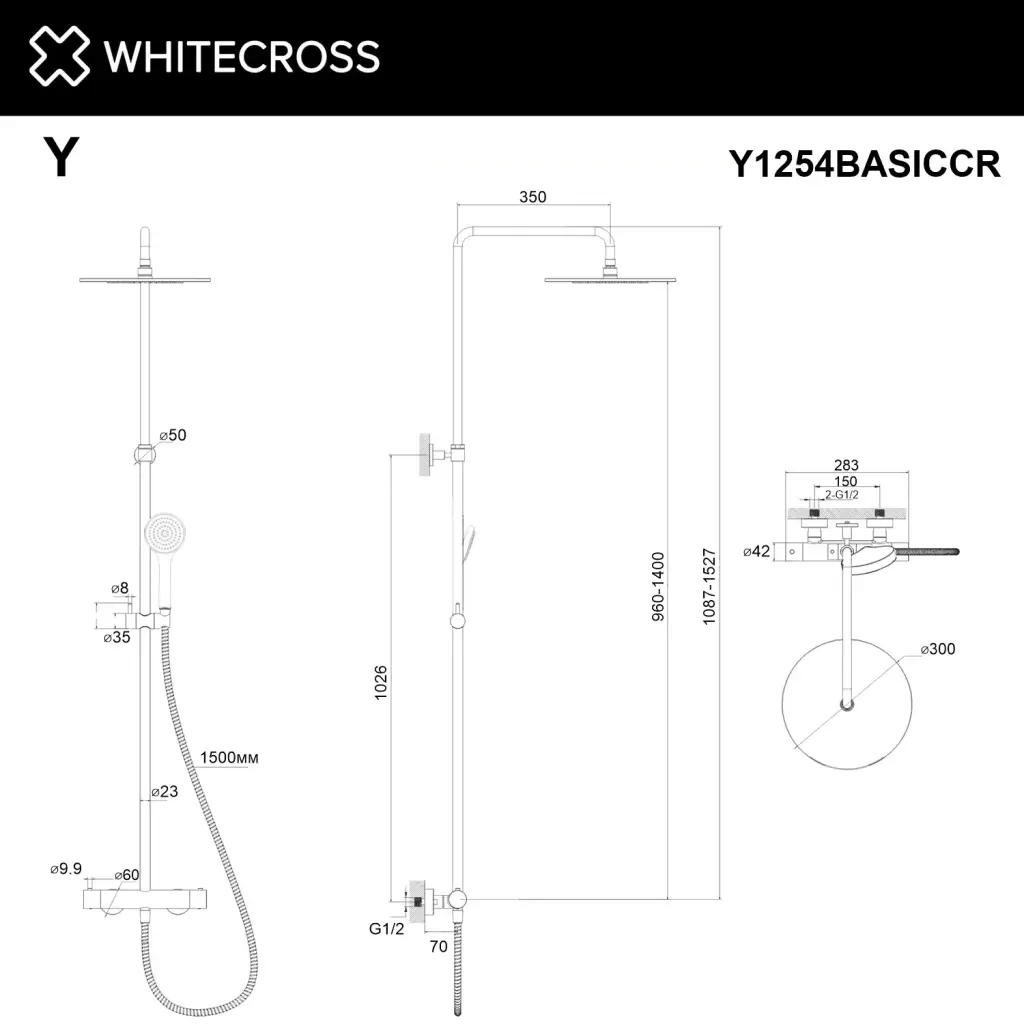Термостатическая душевая система наружного монтажа WHITECROSS Y Y1254BASICBL (черный мат);Термостатическая душевая система наружного монтажа WHITECROSS Y Y1254BASICCR (хром);Термостатическая душевая система наружного монтажа WHITECROSS Y Y1254BASICGLB (брашированное золото)
