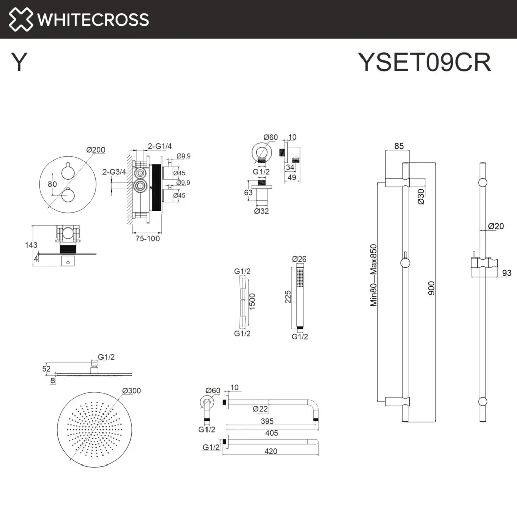 Термостатическая душевая система скрытого монтажа WHITECROSS Y YSET09CR (хром)