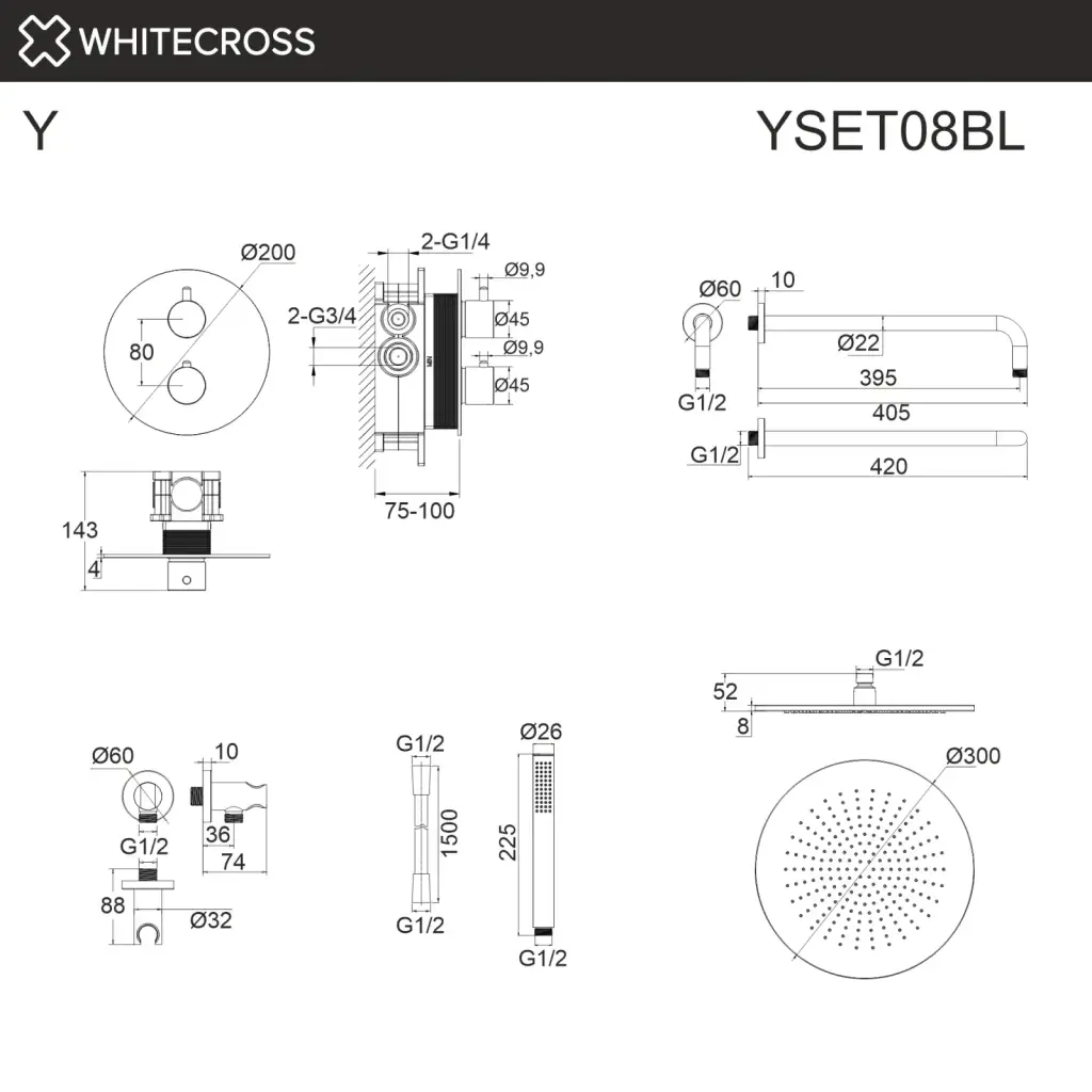 Термостатическая душевая система скрытого монтажа WHITECROSS Y YSET08BL (черный мат);Термостатическая душевая система скрытого монтажа WHITECROSS Y YSET08CR (хром);Термостатическая душевая система скрытого монтажа WHITECROSS Y YSET08GL (золото);Термостатическая душевая система скрытого монтажа WHITECROSS Y YSET08GLB (брашированное золото);Термостатическая душевая система скрытого монтажа WHITECROSS Y YSET08GM (оружейная сталь);Термостатическая душевая система скрытого монтажа WHITECROSS Y YSET08NIB (брашированный никель);Термостатическая душевая система скрытого монтажа WHITECROSS Y YSET08CPB (брашированная медь)