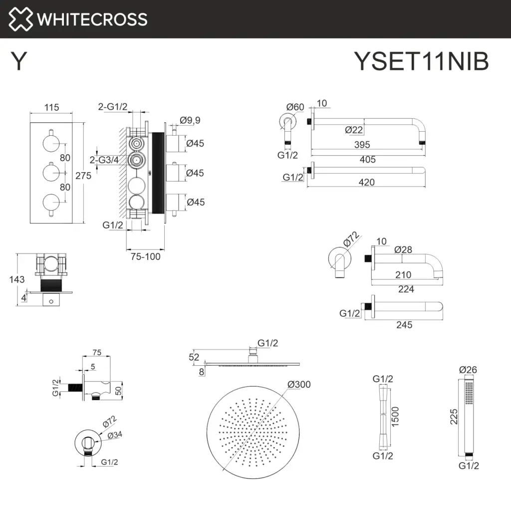 Термостатическая система для ванны скрытого монтажа WHITECROSS Y YSET11BL (черный мат);Термостатическая система для ванны скрытого монтажа WHITECROSS Y YSET11CR (хром);Термостатическая система для ванны скрытого монтажа WHITECROSS Y YSET11GL (золото);Термостатическая система для ванны скрытого монтажа WHITECROSS Y YSET11GLB (брашированное золото);Термостатическая система для ванны скрытого монтажа WHITECROSS Y YSET11GM (оружейная сталь);Термостатическая система для ванны скрытого монтажа WHITECROSS Y YSET11NIB (брашированный никель)