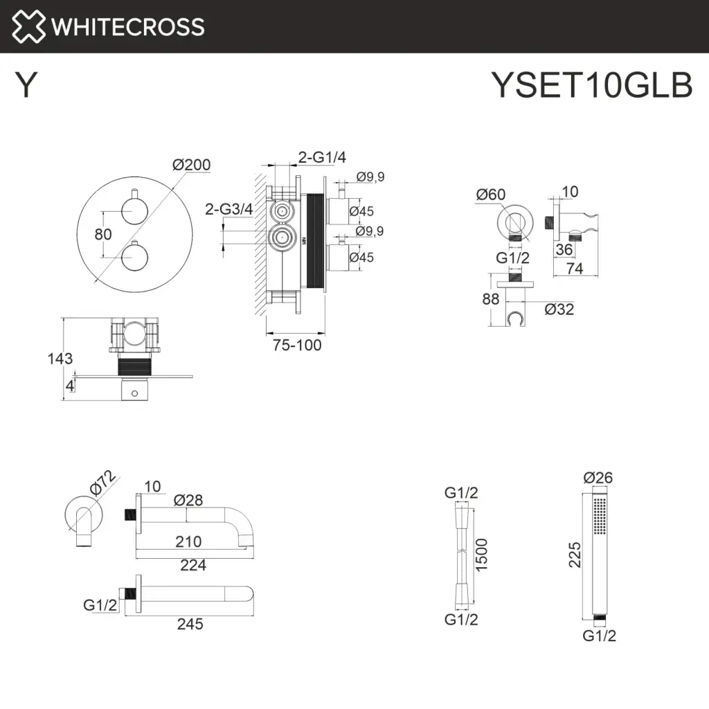 Термостатическая система для ванны скрытого монтажа WHITECROSS Y YSET10BL (черный мат);Термостатическая система для ванны скрытого монтажа WHITECROSS Y YSET10CR (хром);Термостатическая система для ванны скрытого монтажа WHITECROSS Y YSET10GL (золото);Термостатическая система для ванны скрытого монтажа WHITECROSS Y YSET10GLB (брашированное золото);Термостатическая система для ванны скрытого монтажа WHITECROSS Y YSET10GM (оружейная сталь);Термостатическая система для ванны скрытого монтажа WHITECROSS Y YSET10NIB (брашированный никель)
