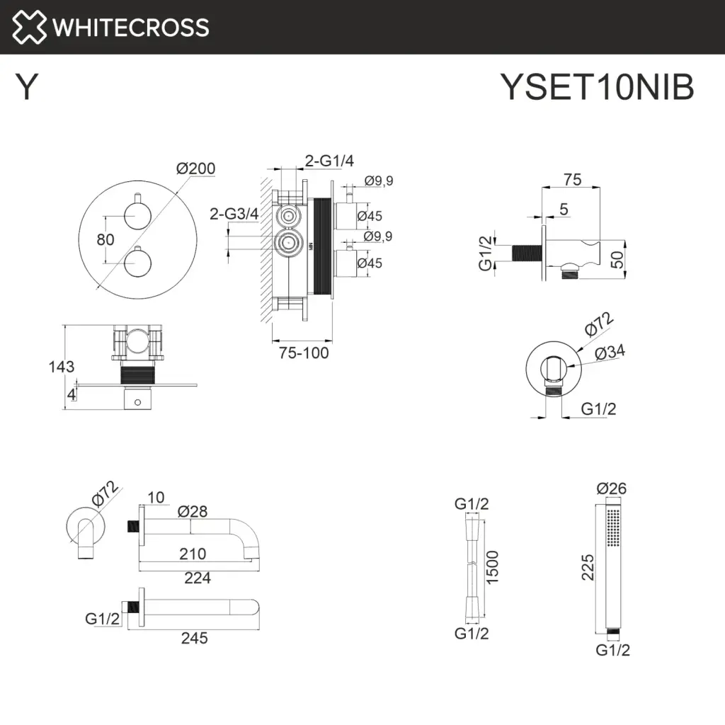 Термостатическая система для ванны скрытого монтажа WHITECROSS Y YSET10BL (черный мат);Термостатическая система для ванны скрытого монтажа WHITECROSS Y YSET10CR (хром);Термостатическая система для ванны скрытого монтажа WHITECROSS Y YSET10GL (золото);Термостатическая система для ванны скрытого монтажа WHITECROSS Y YSET10GLB (брашированное золото);Термостатическая система для ванны скрытого монтажа WHITECROSS Y YSET10GM (оружейная сталь);Термостатическая система для ванны скрытого монтажа WHITECROSS Y YSET10NIB (брашированный никель)