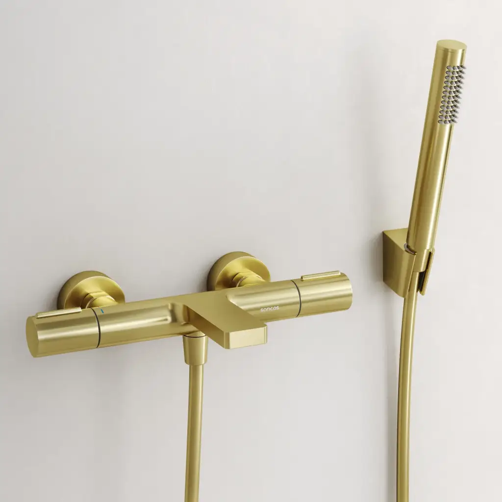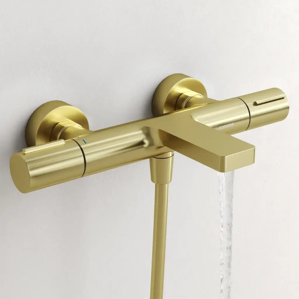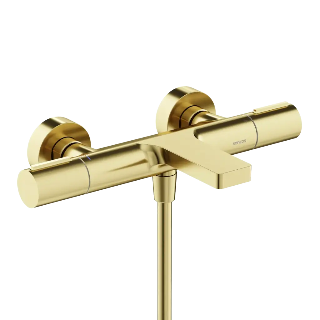 Термостатический смеситель для ванны и душа SANCOS Этна (Etna), брашированное золото, PVD покрытие, арт. SC9006BG