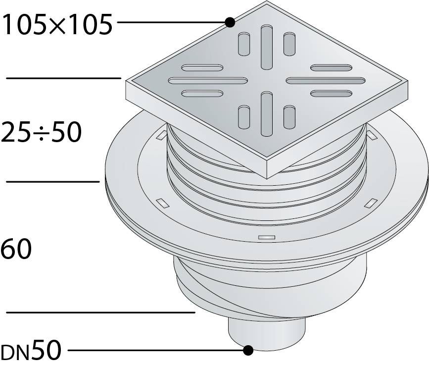 Трап 105х105 мм, вертикальный выход DN50 OMP Tea Wang 263.201.8