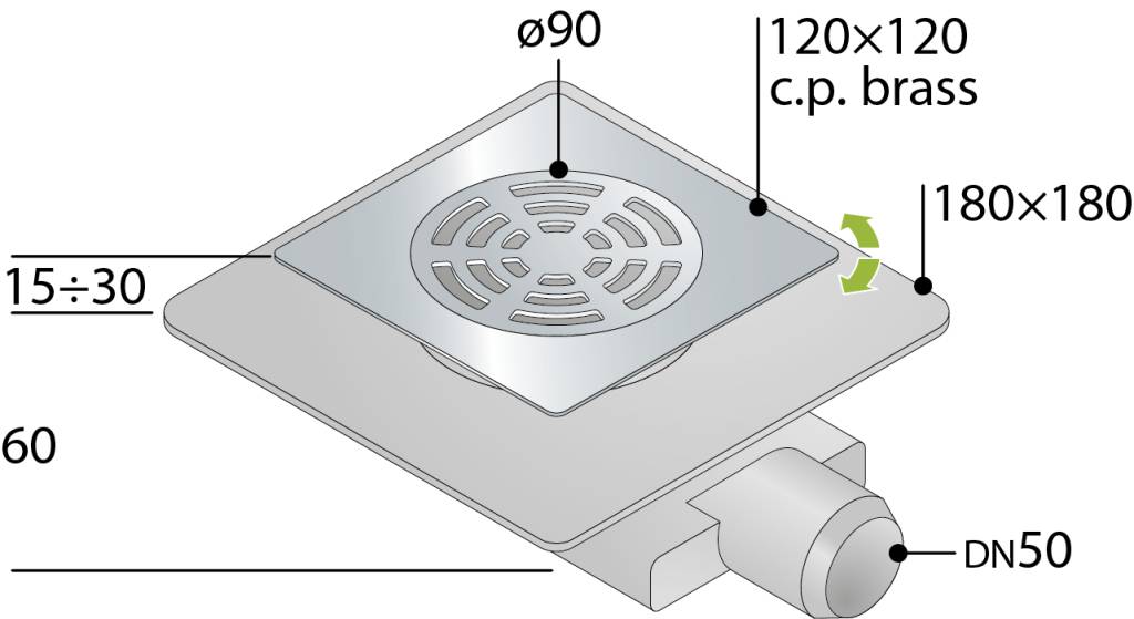 Трап 120х120 мм, горизонтальный выход DN50 OMP Tea Tirana 2665.591.8