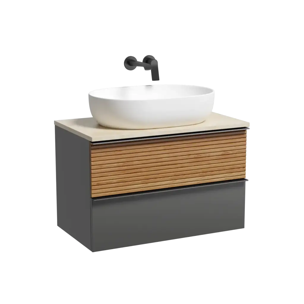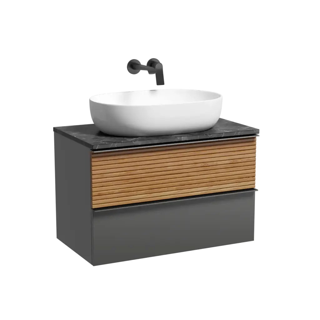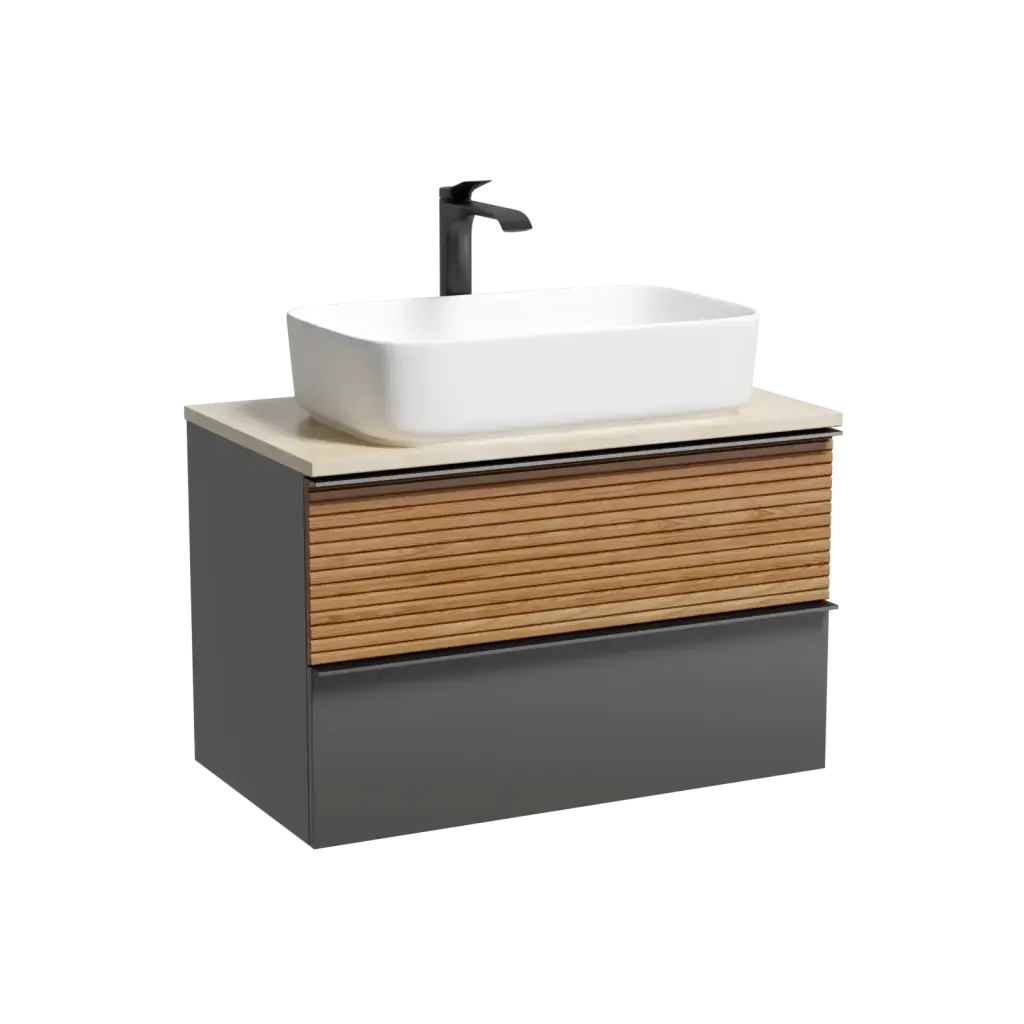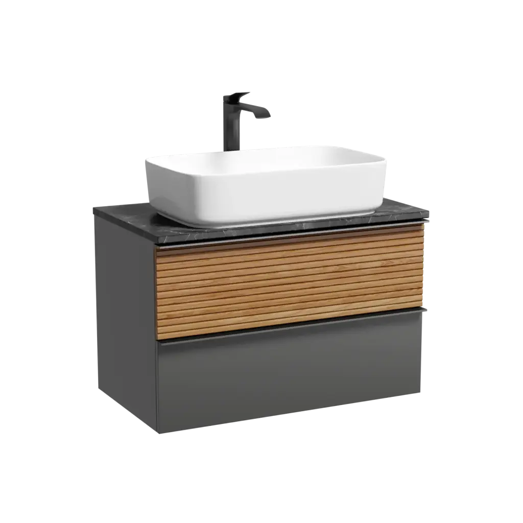 Тумба подвесная SANCOS Delta 790х445х500, c двумя ящиками оснащенными доводчиками, дуб красный/графит , арт. DL80GR