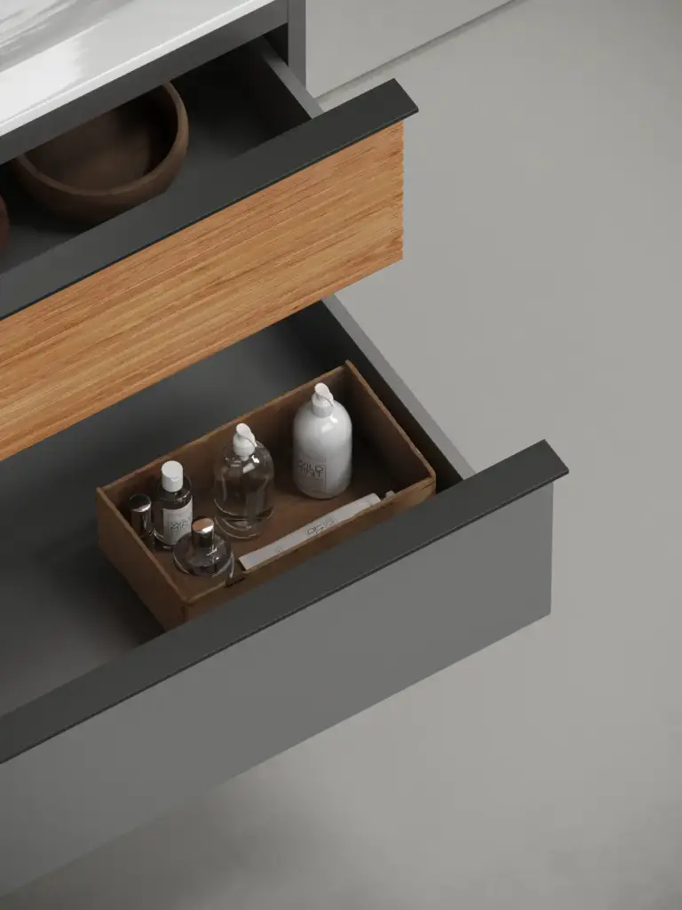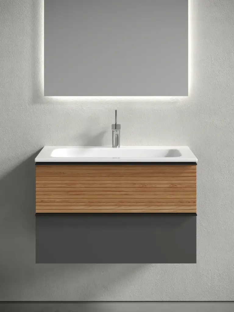 Тумба подвесная SANCOS Delta 995х445х500, c двумя ящиками оснащенными доводчиками, дуб красный/графит , арт. DL100GR