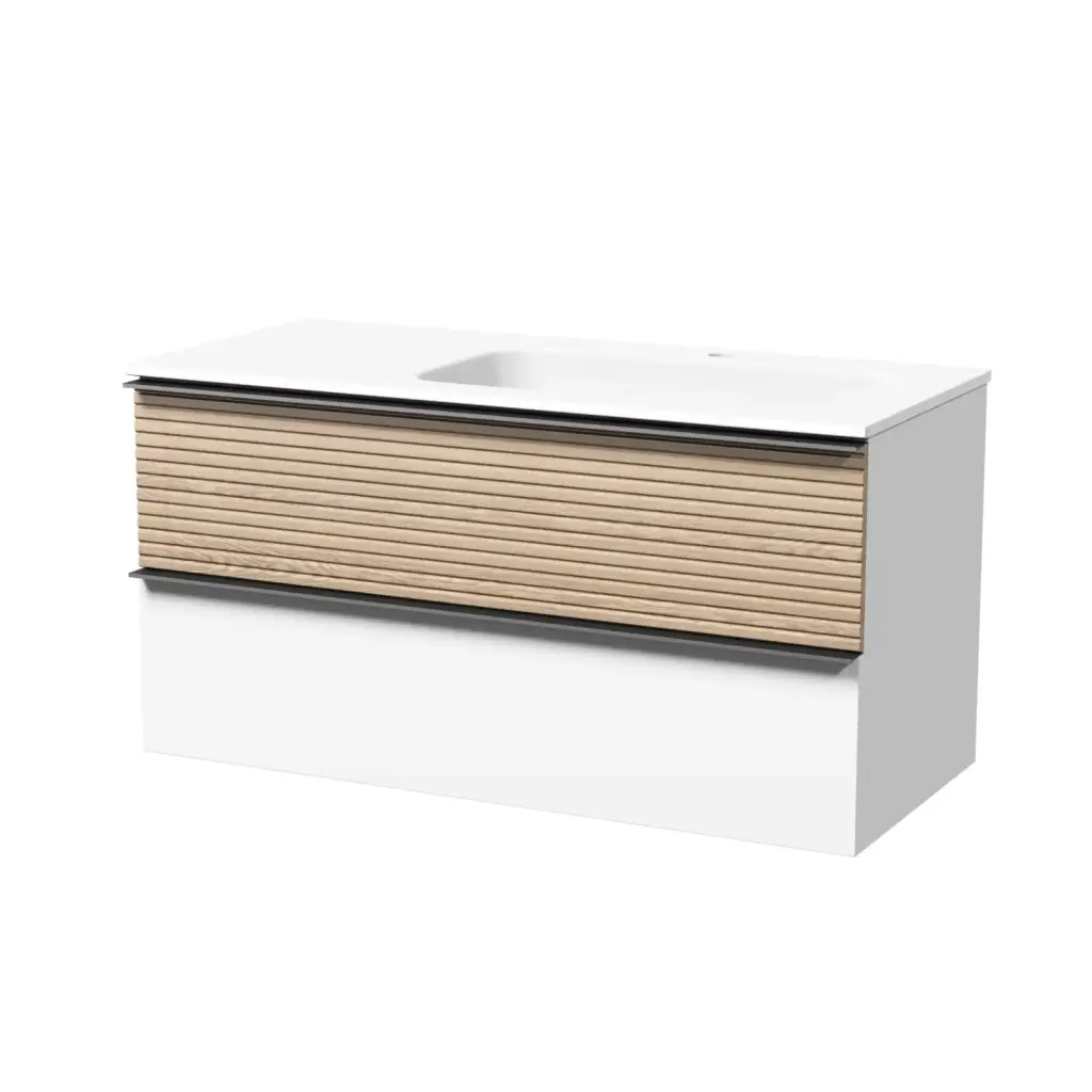 Тумба подвесная SANCOS Delta 995х445х500, c двумя ящиками оснащенными доводчиками, левая, дуб светлый/белый , арт. DL100LW