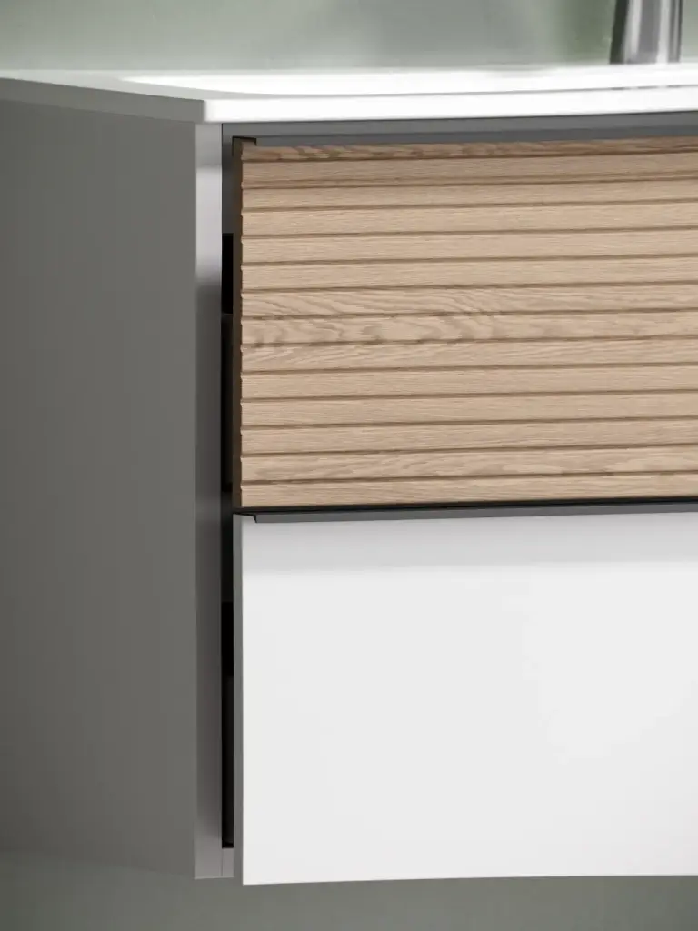 Тумба подвесная SANCOS Delta 790х445х500, c двумя ящиками оснащенными доводчиками, дуб красный/графит , арт. DL80GR