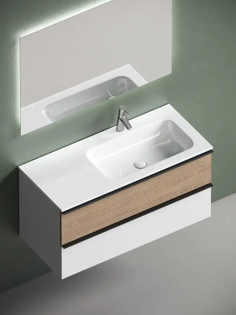 Тумба подвесная SANCOS Delta 995х445х500, c двумя ящиками оснащенными доводчиками, правая, дуб светлый/белый , арт. DL100RW