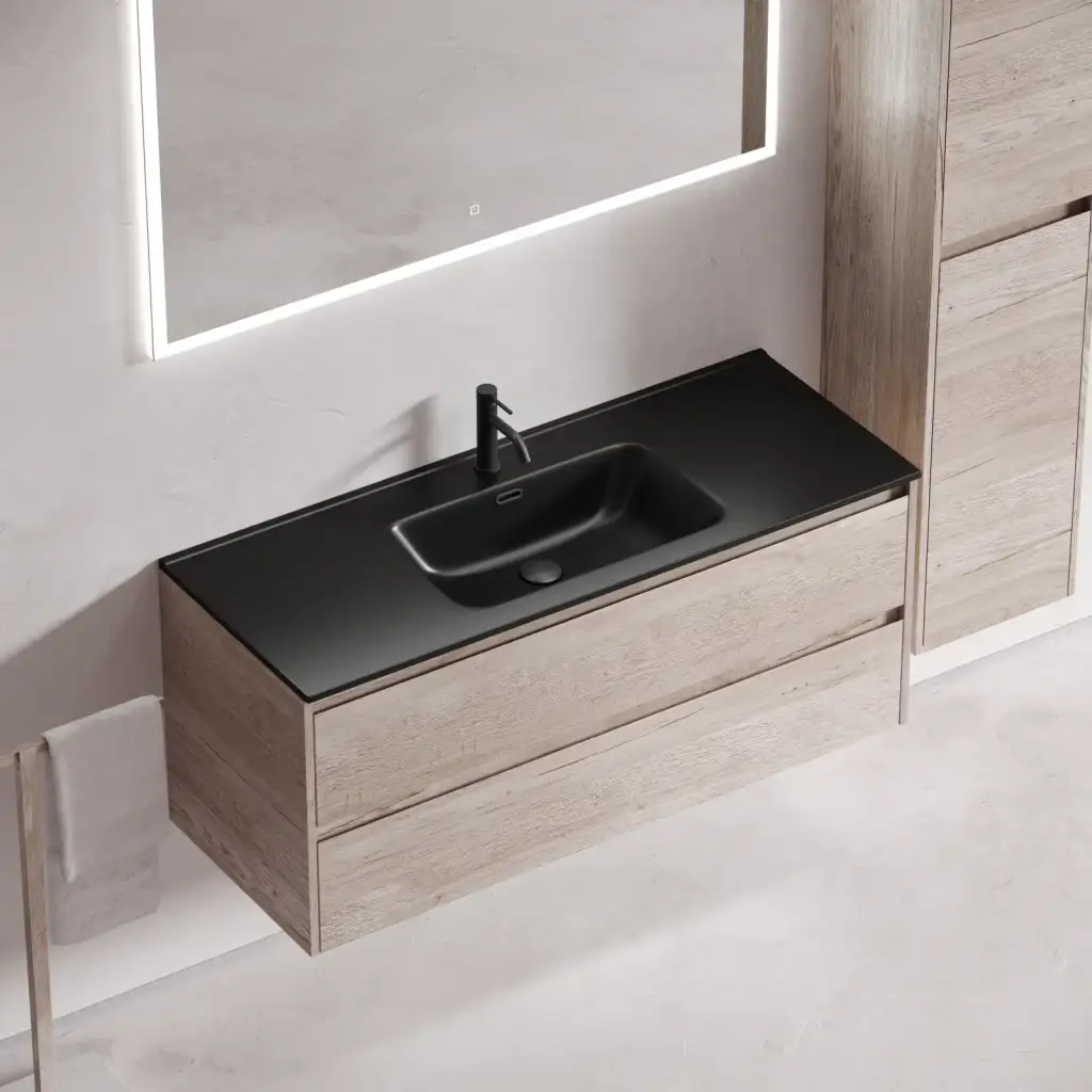 Тумба подвесная SANCOS Libra 1190х450х500, c двумя ящиками оснащенными доводчиками, дуб галифакс натуральный, арт. LB120-1EG