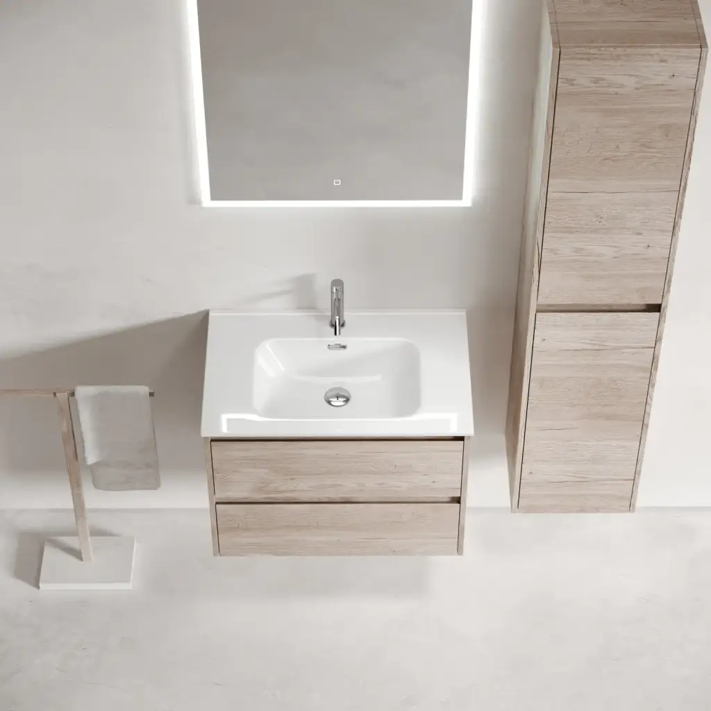 Тумба подвесная SANCOS Libra 690х450х500, c двумя ящиками оснащенными доводчиками, дуб галифакс натуральный, арт. LB70EG