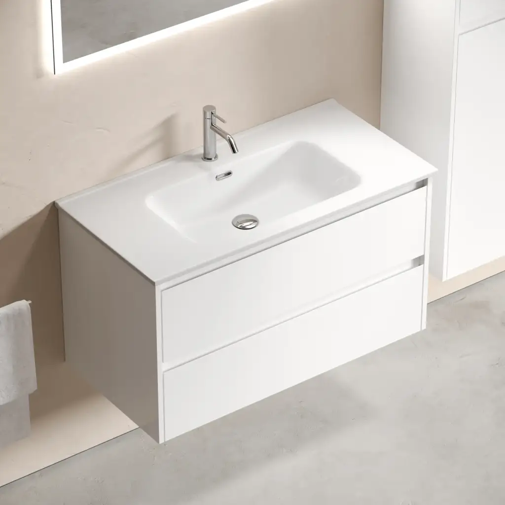 Тумба подвесная SANCOS Libra 890х450х500, c двумя ящиками оснащенными доводчиками, белый глянец , арт. LB90W