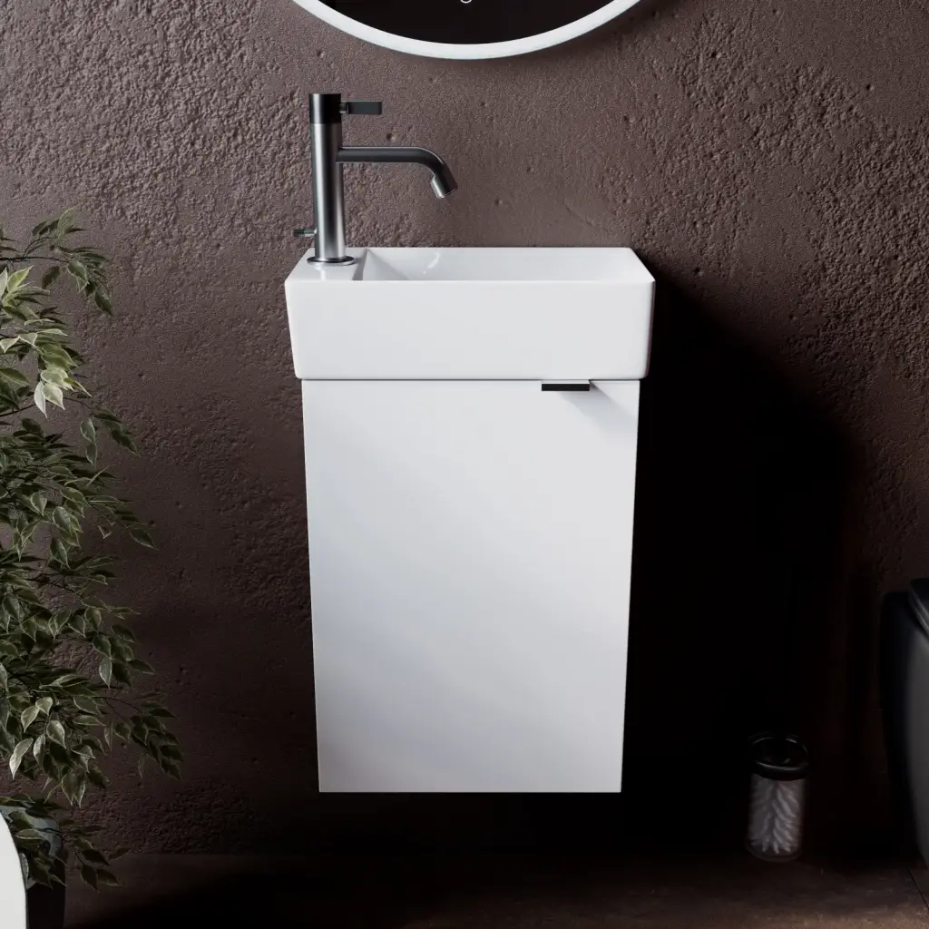 Тумба подвесная SANCOS Mini 355х205х500, с распашной дверцей, внутри 1 полка, белый глянец , арт.MN35WL