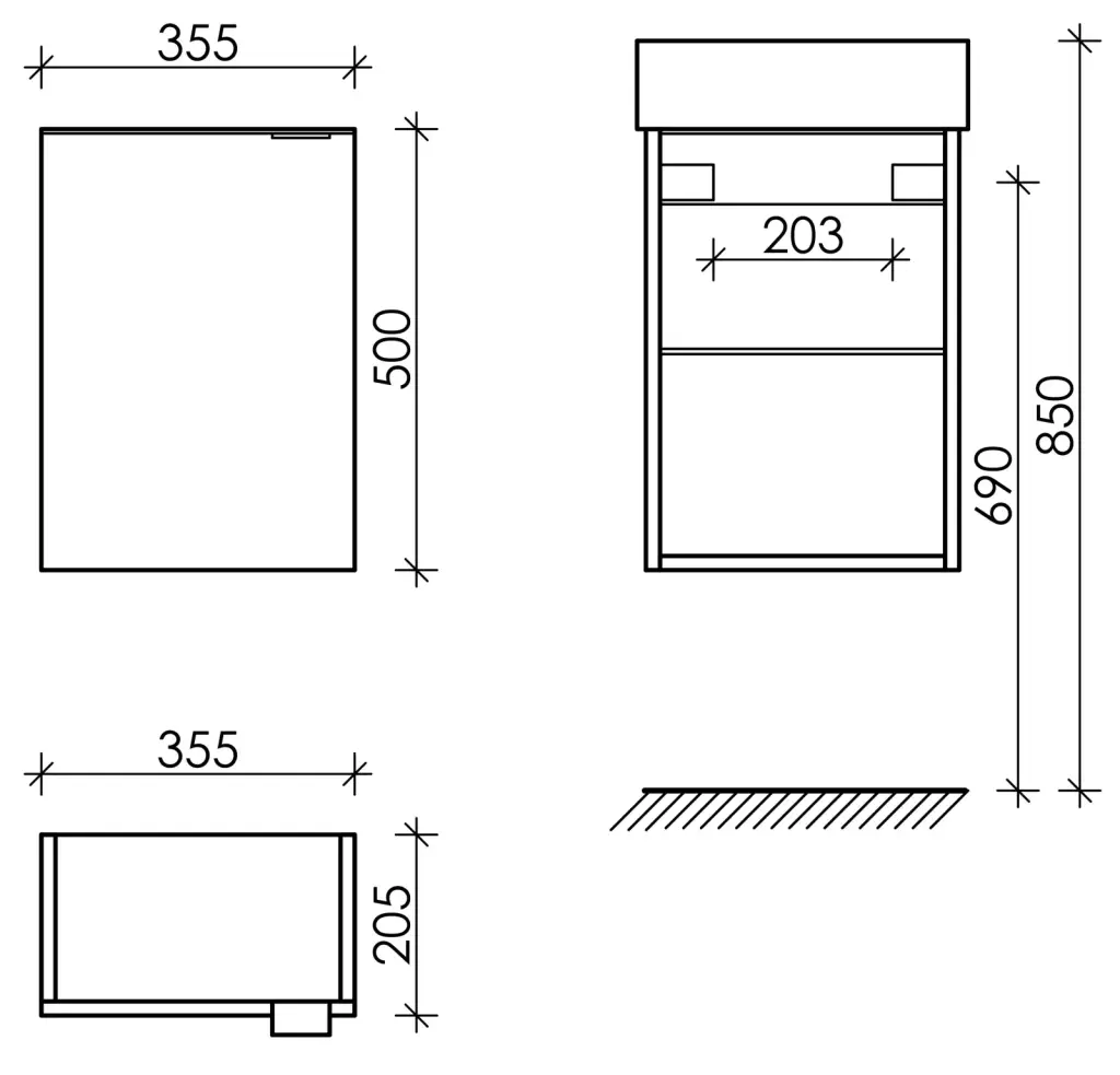 Тумба подвесная SANCOS Mini 355х205х500, с распашной дверцей, внутри 1 полка, дуб чарльстон , арт.MN35ECHL