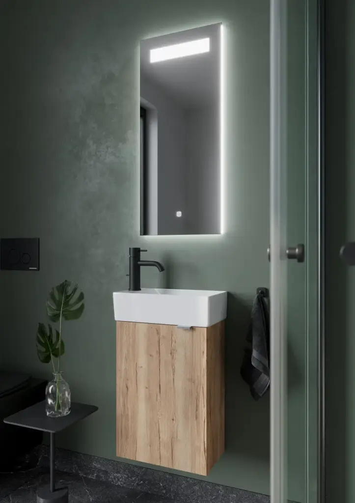 Тумба подвесная SANCOS Mini 355х205х500, с распашной дверцей, внутри 1 полка, дуб галифакс натуральный , арт.MN35EGR