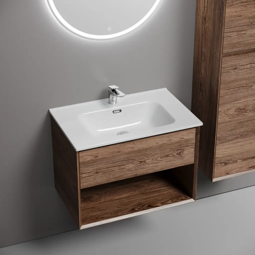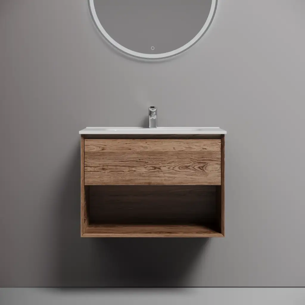 Тумба подвесная SANCOS Marmi 1.0 790х445х520 c одним ящиком оснащенным доводчиками скрытого монтажа и открытой нишей, дуб чарльстон, арт.MR1.080ECH