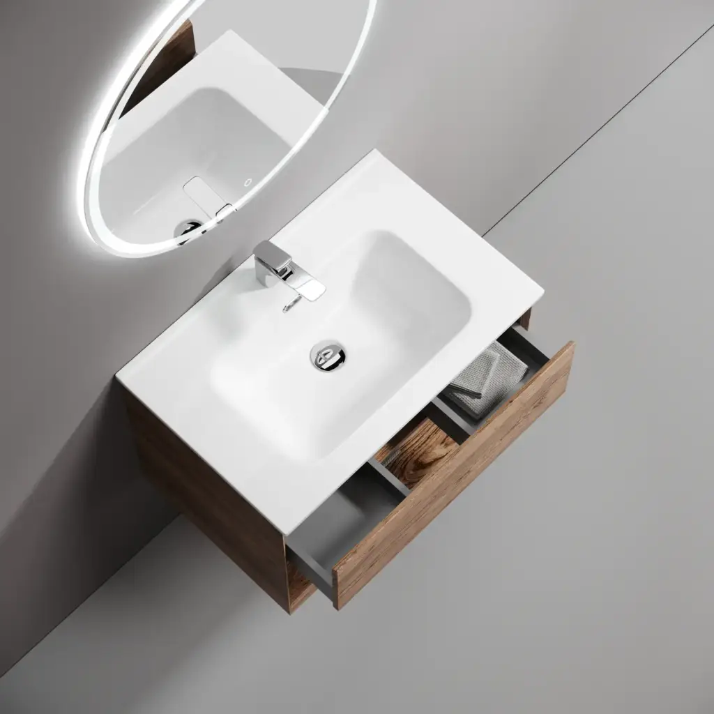 Тумба подвесная SANCOS Marmi 1.0 690х445х520 c одним ящиком оснащенным доводчиками скрытого монтажа и открытой нишей, дуб галифакс натуральный, арт. MR1.070EG
