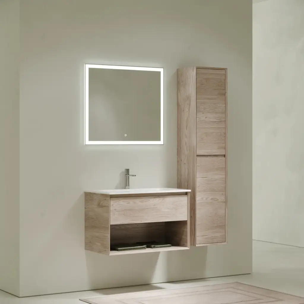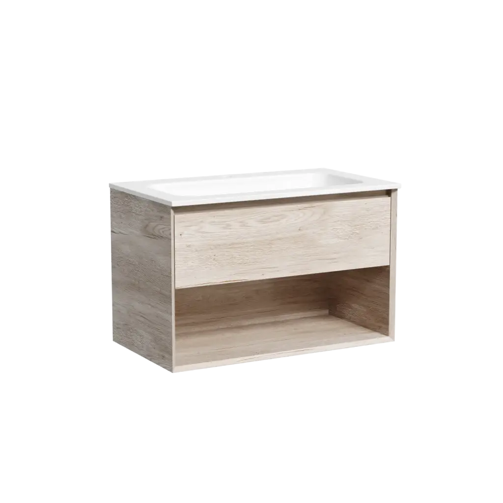 Тумба подвесная SANCOS Marmi 1.0 790х445х520 c одним ящиком оснащенным доводчиками скрытого монтажа и открытой нишей, дуб галифакс натуральный, арт. MR1.080EG