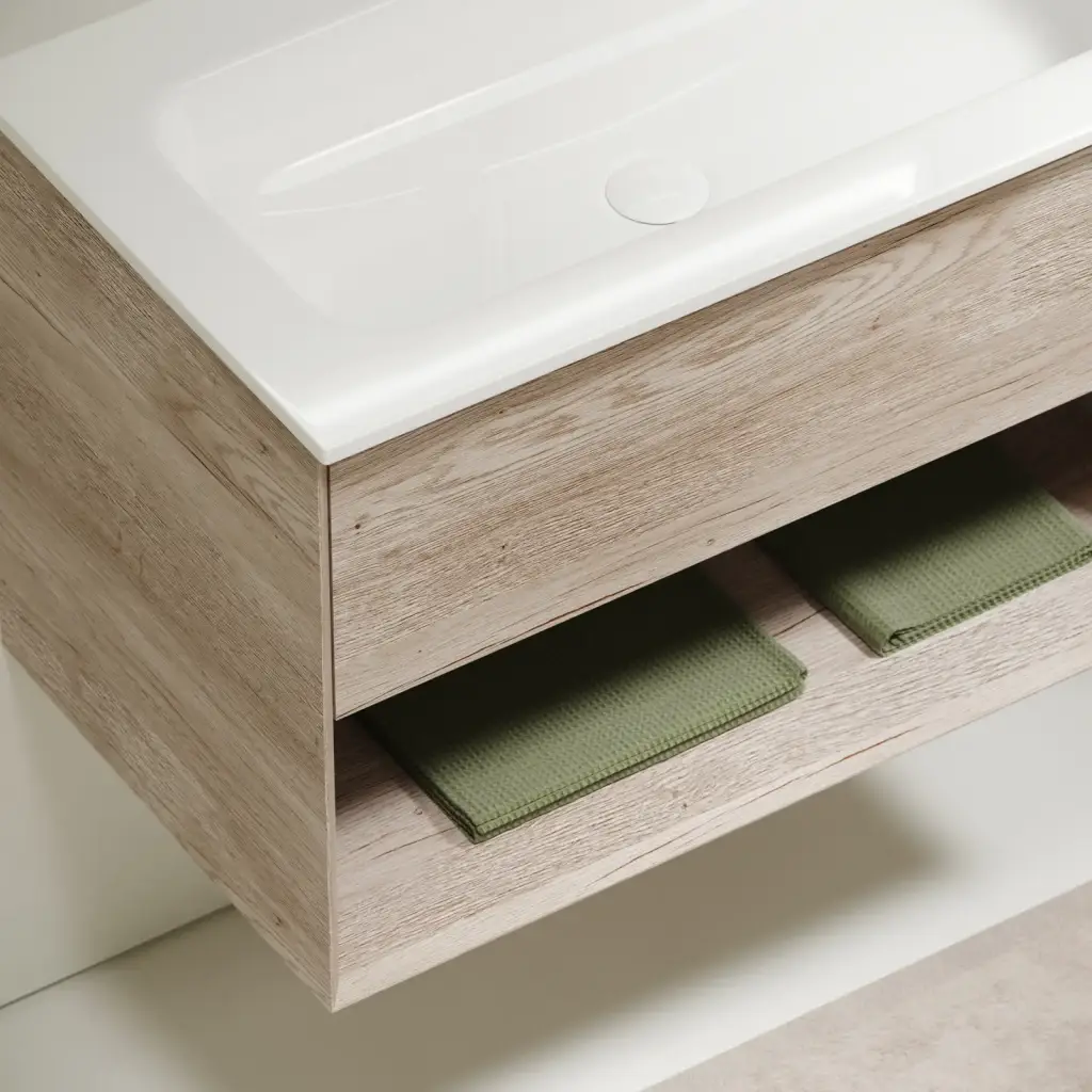 Тумба подвесная SANCOS Marmi 1.0 890х445х520 c одним ящиком оснащенным доводчиками скрытого монтажа и открытой нишей, дуб галифакс натуральный, арт. MR1.090EG