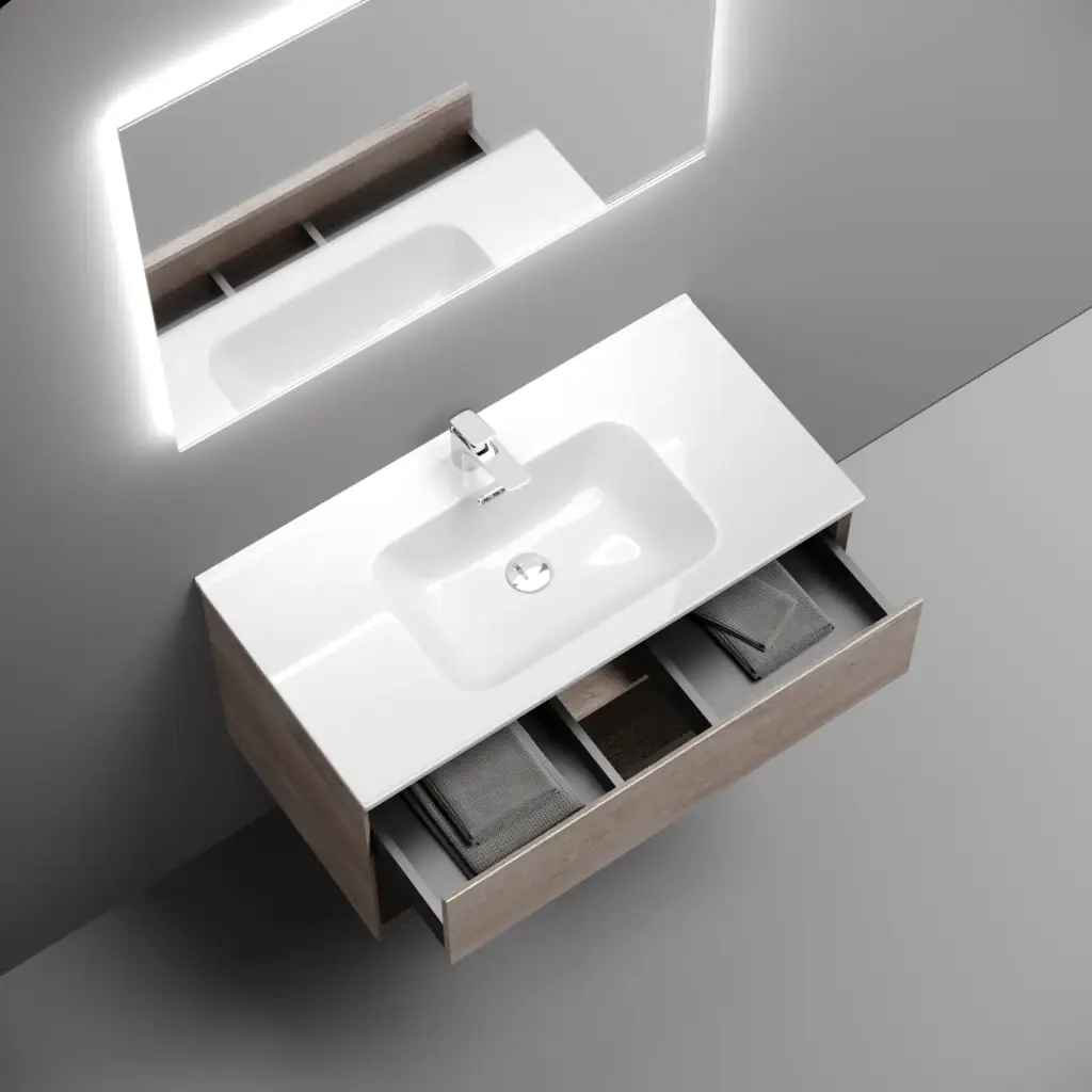 Тумба подвесная SANCOS Marmi 1.0 890х445х520 c одним ящиком оснащенным доводчиками скрытого монтажа и открытой нишей, дуб чарльстон, арт.MR1.090ECH