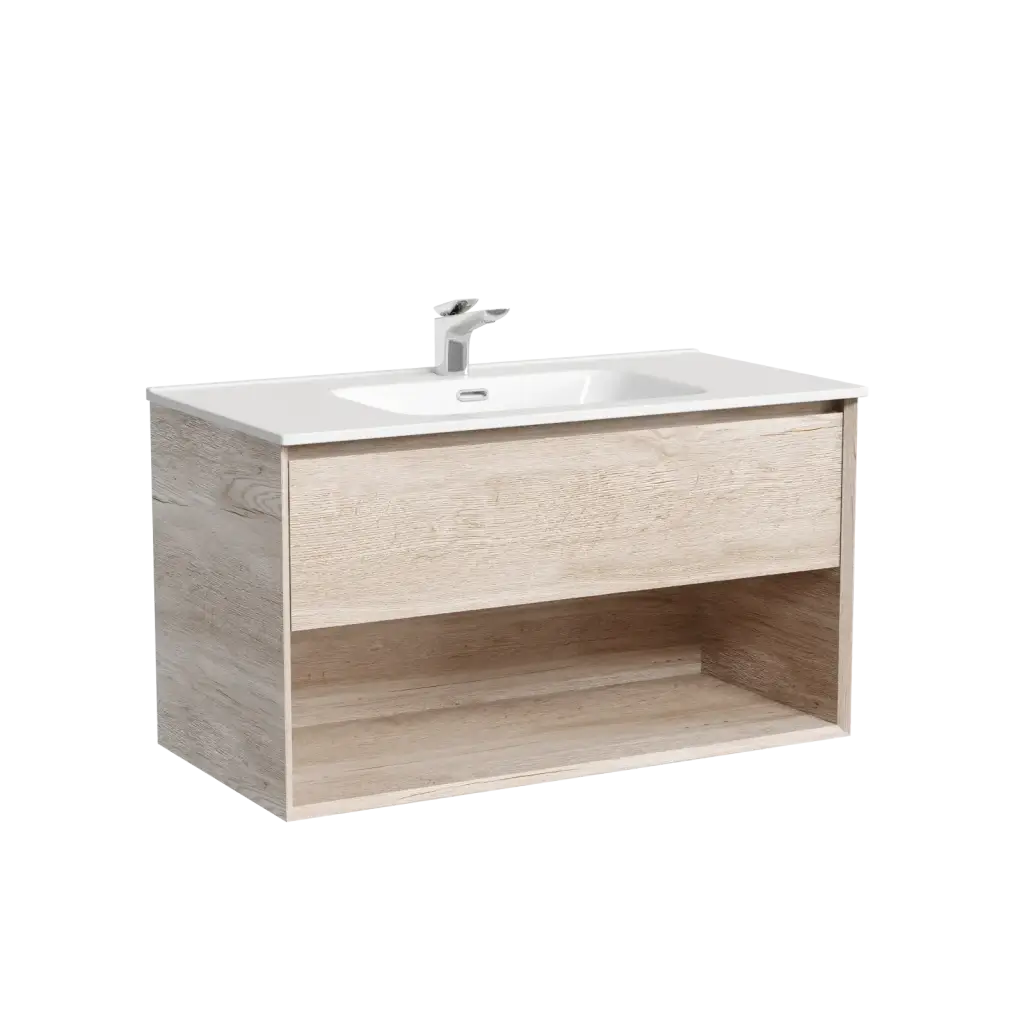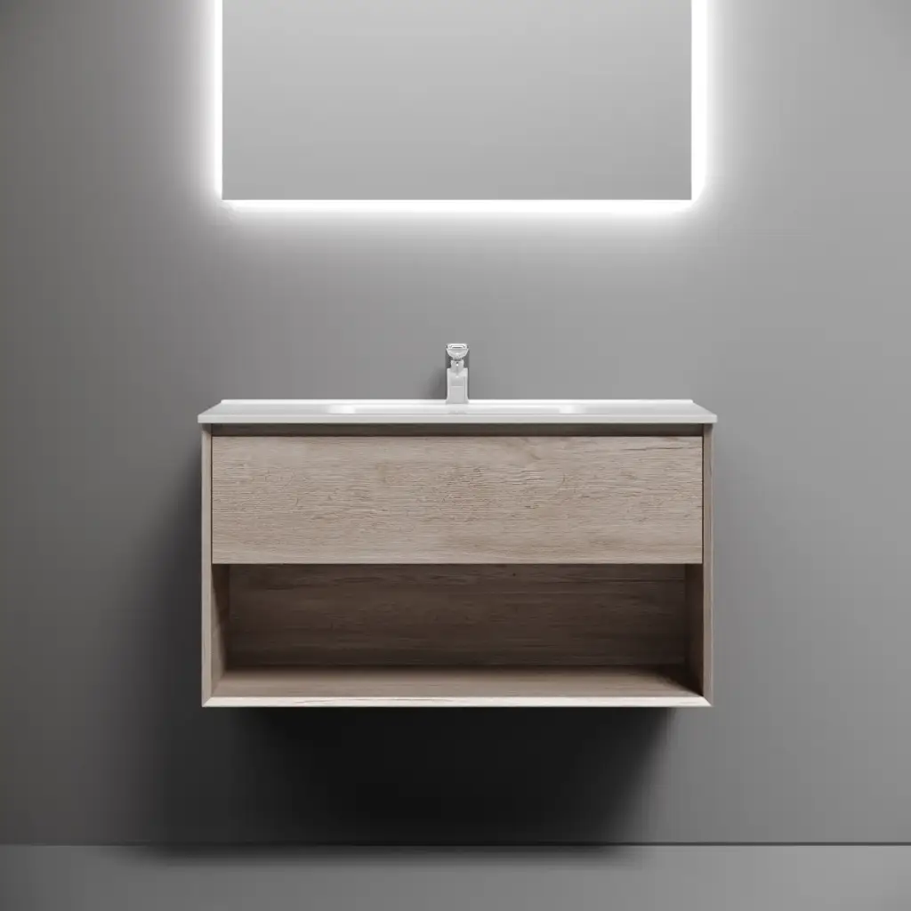 Тумба подвесная SANCOS Marmi 1.0 890х445х520 c одним ящиком оснащенным доводчиками скрытого монтажа и открытой нишей, дуб галифакс натуральный, арт. MR1.090EG