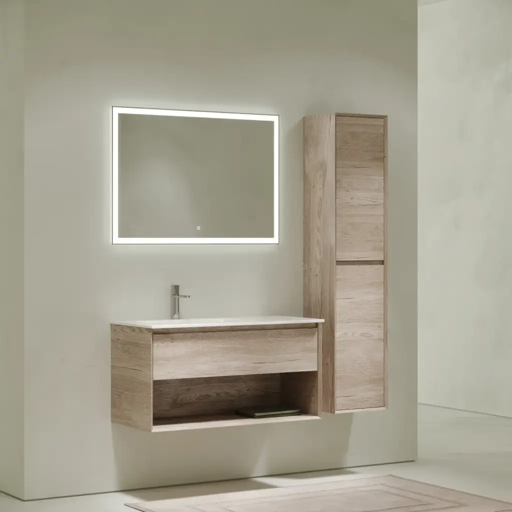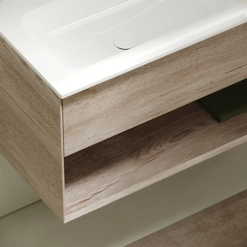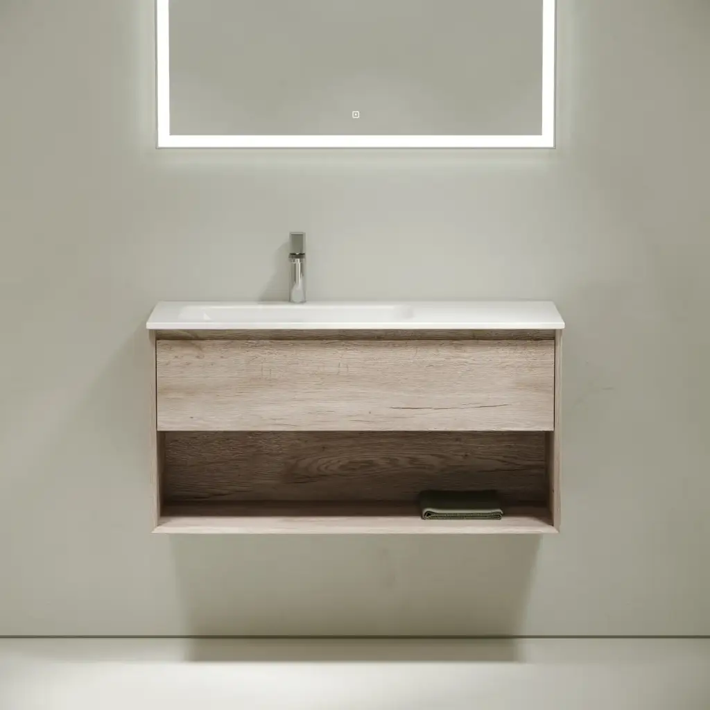 Тумба подвесная SANCOS Marmi 1.0 890х445х520 c одним ящиком оснащенным доводчиками скрытого монтажа и открытой нишей, дуб галифакс натуральный, арт. MR1.090EG