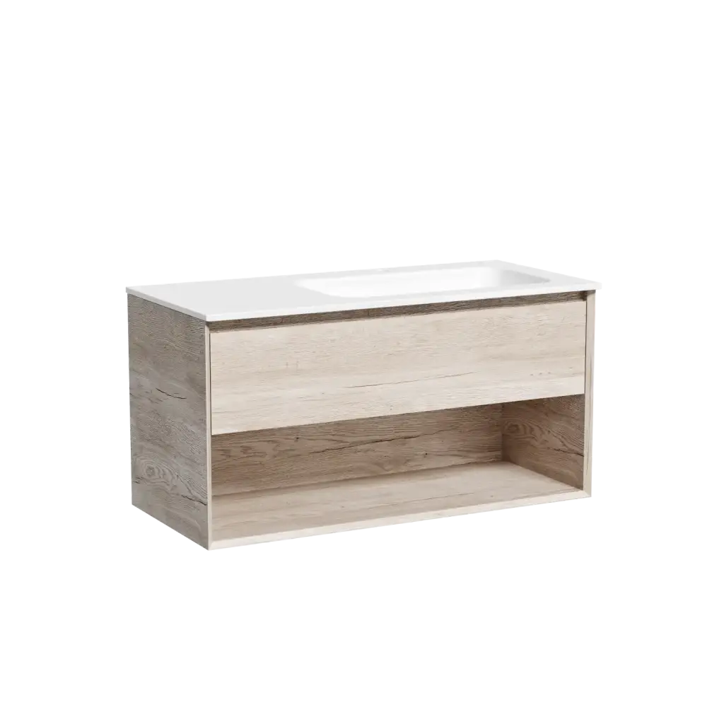 Тумба подвесная SANCOS Marmi 1.0 правая, 995х445х520, c одним ящиком оснащенным доводчиками скрытого монтажа и открытой нишей, дуб галифакс натуральный, арт. MR1.0100REG