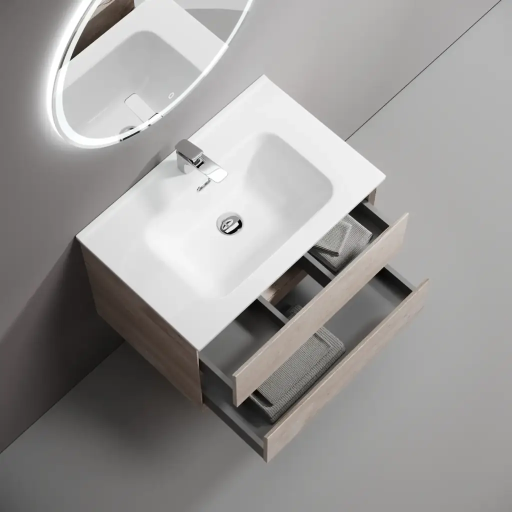 Тумба подвесная SANCOS Marmi 2.0 590х445х520 c двумя ящиками оснащенными доводчиками скрытого монтажа, цвет дуб чарльстон, арт.MR2.060ECH