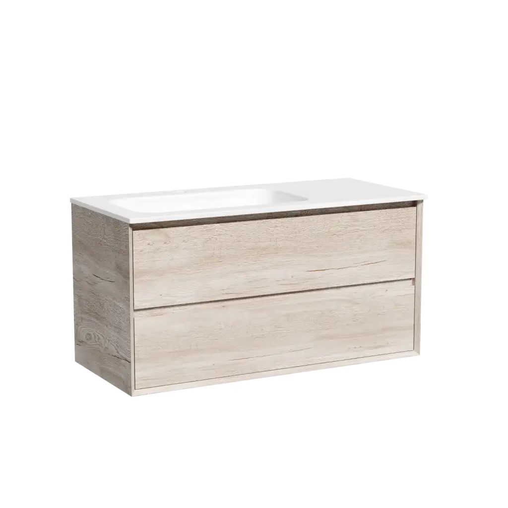 Тумба подвесная SANCOS Marmi 2.0 левая, 995х445х520, c двумя ящиками оснащенными доводчиками скрытого монтажа, цвет дуб галифакс натуральный, арт. MR2.0100LEG
