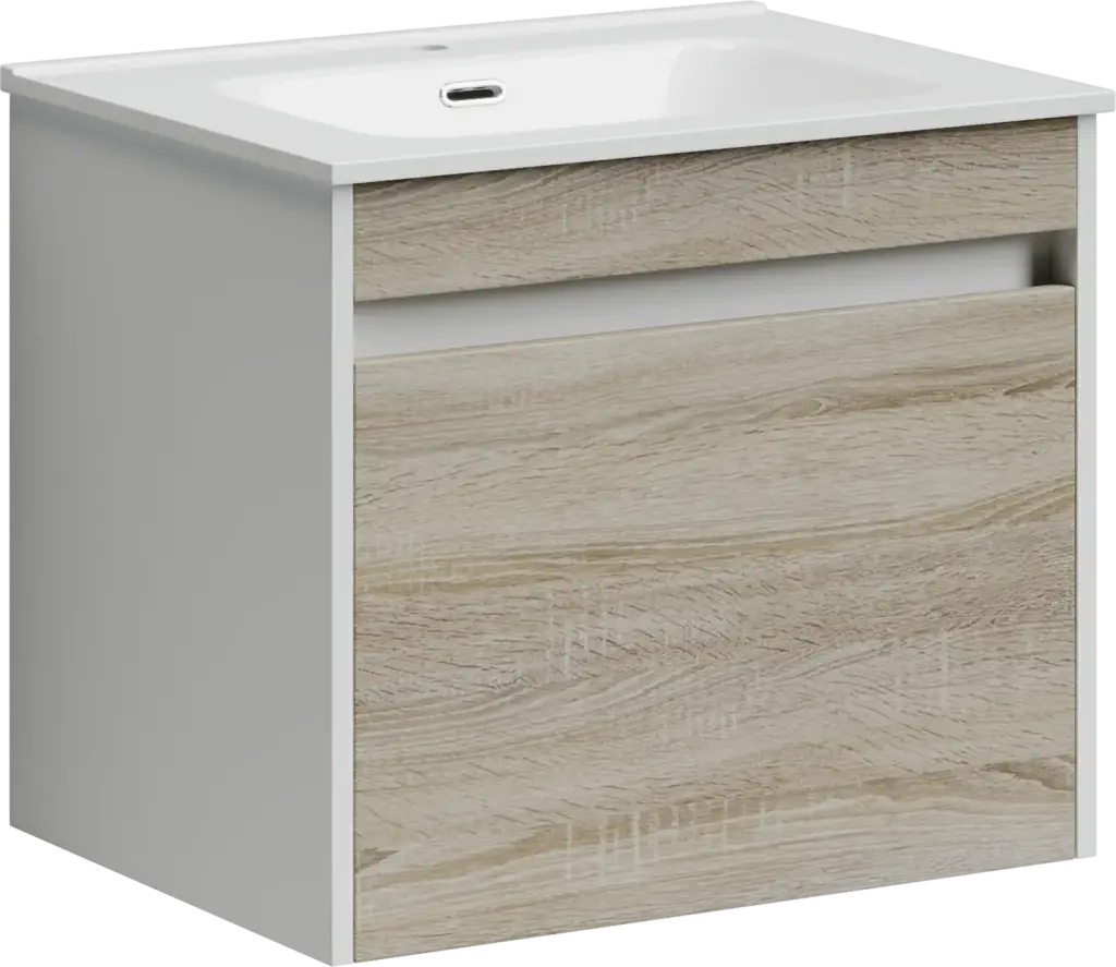 Тумба подвесная SANCOS Smart 590х450х500, c двумя ящиками оснащенными доводчиками, дуб бардолино/белый , арт. SM60E